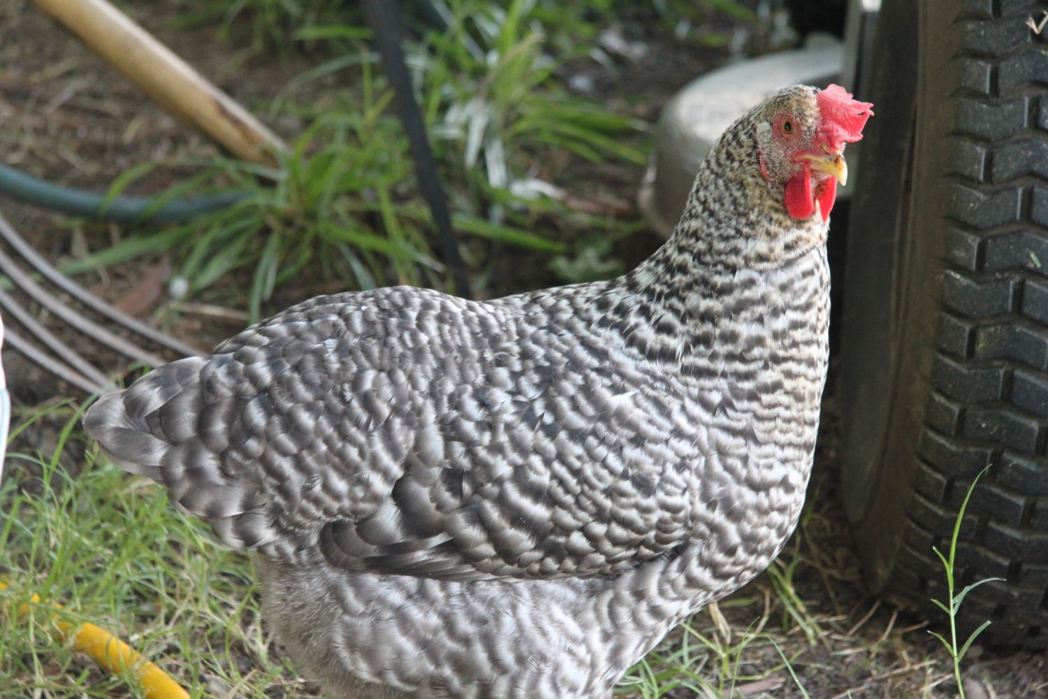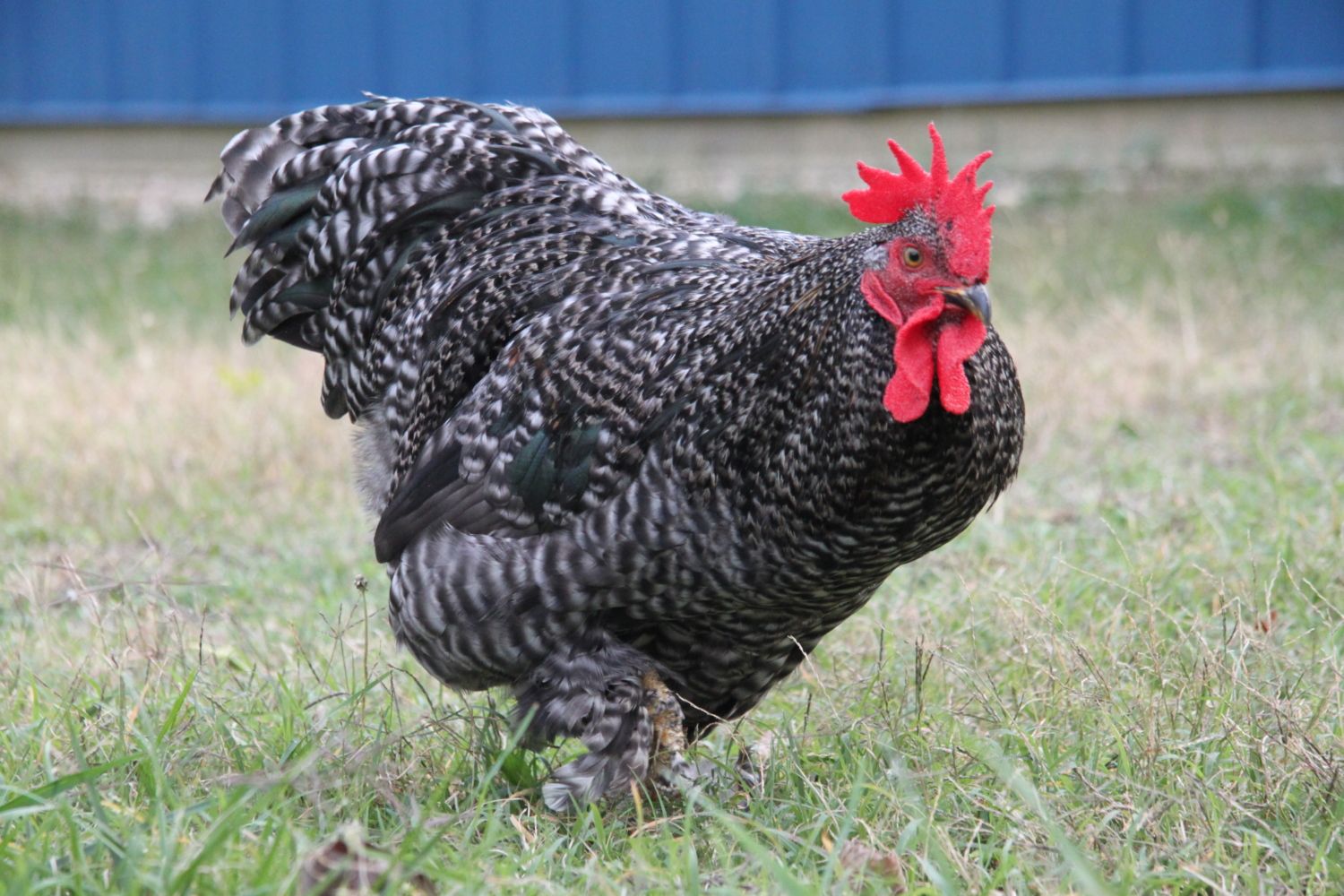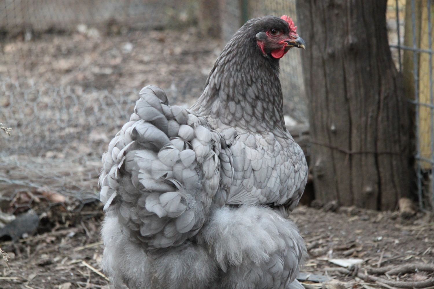 Originally dubbed the painfully uncreative name "Cheekpuffs" Puff Daddy is a young fella from the same brood as Gru. Like Gru, he has a chill personality and curious nature, and while he shares most roosters' aversion to being held, he's a friendly bird who enjoys human company. An EE/Barred Rock mix, we're not sure which parent was which, since he easily could have been sired by an EE rooster OR a BR rooster.