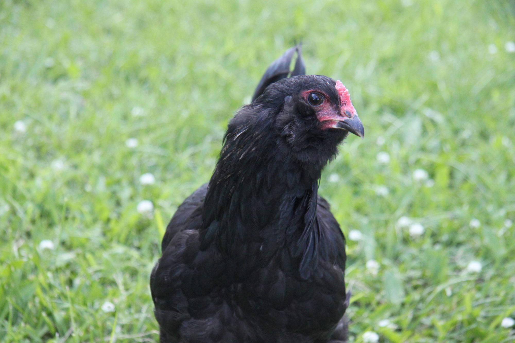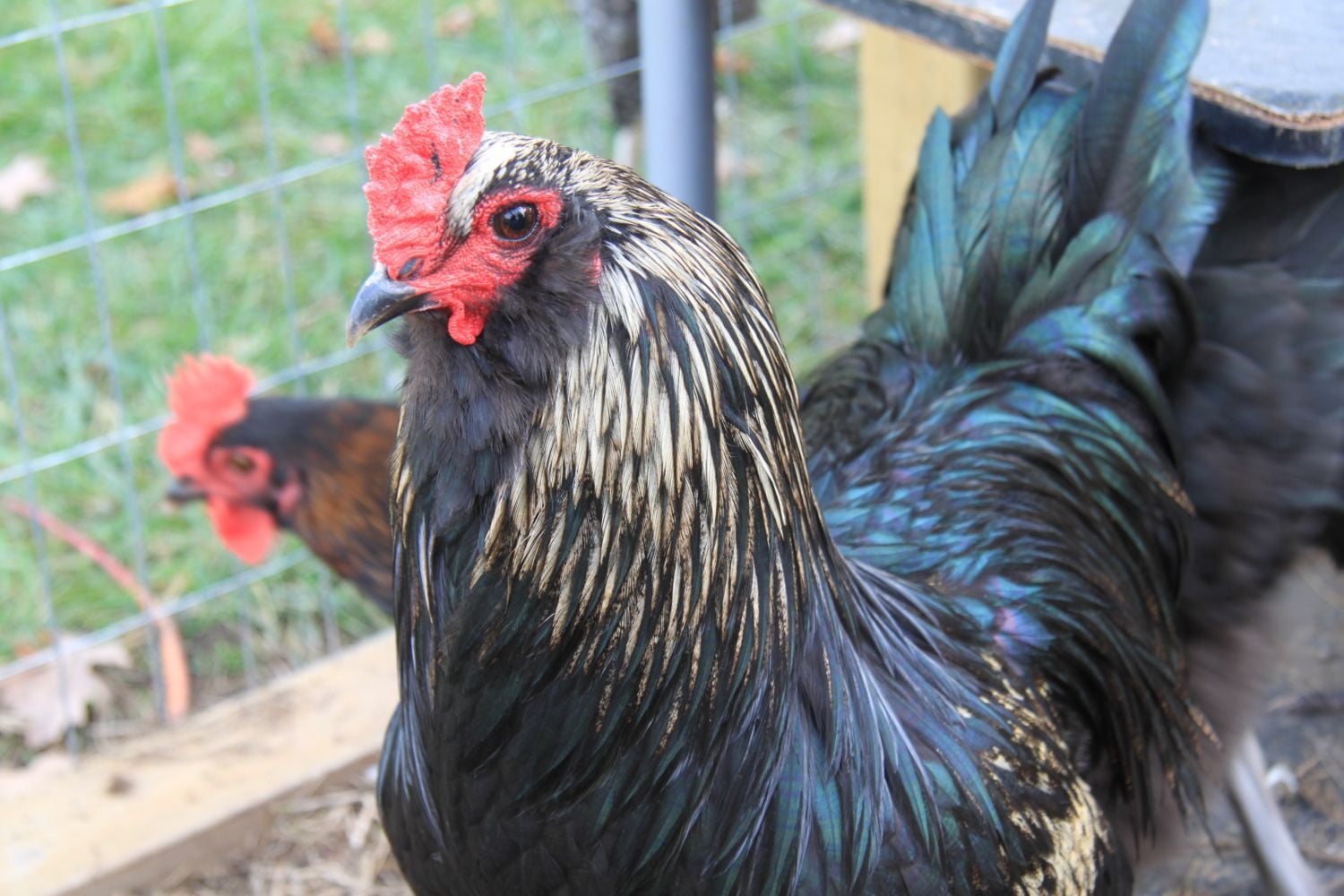 Unfortunately, I haven't taken a recent photo of Gru, which is a shame because he's quite a beautiful rooster. Photos don't easily capture the intensely iridescent nature of his feathers, but he sure is a handsome fellow. His chicks won't be even remotely purebred, but they will sure be pretty!