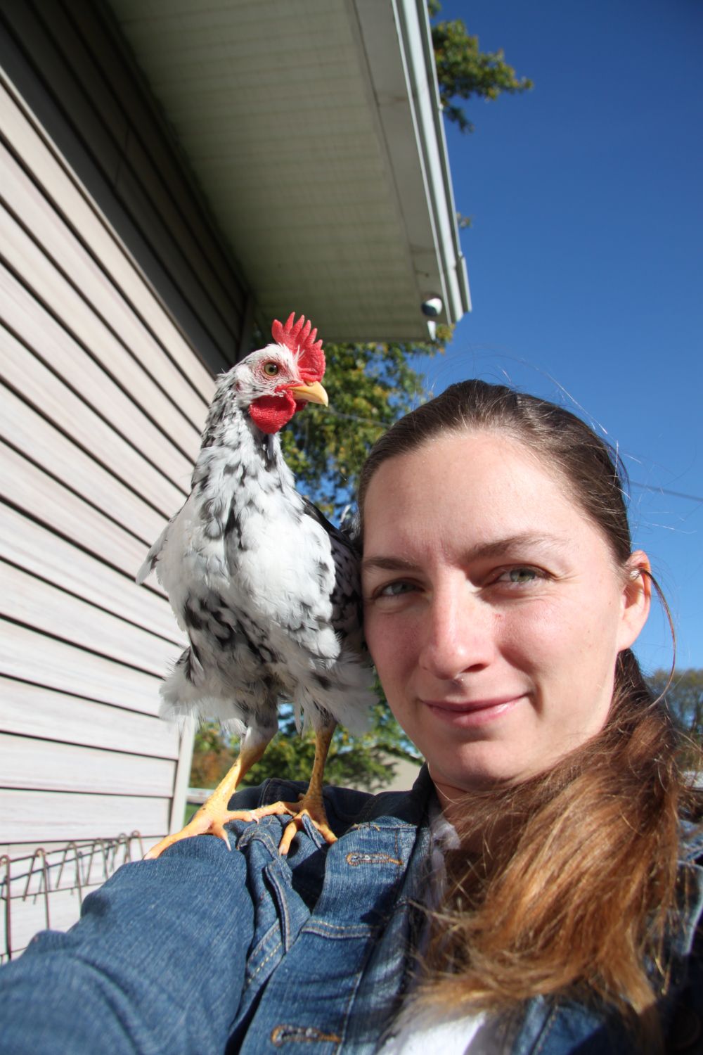 Although I had hoped for friendly silkies when I placed this order, the friendliest chick in the brood turned out to be my leghorn cockerel! Named Leonard after a character from Big Bang Theory, Leonard follows me devotedly and cuddles on my shoulder for naps. Surprisingly, his female counterpart Penny wants nothing to do with me, but that's ok--I hadn't gotten the leghorns expecting them to be friendly.