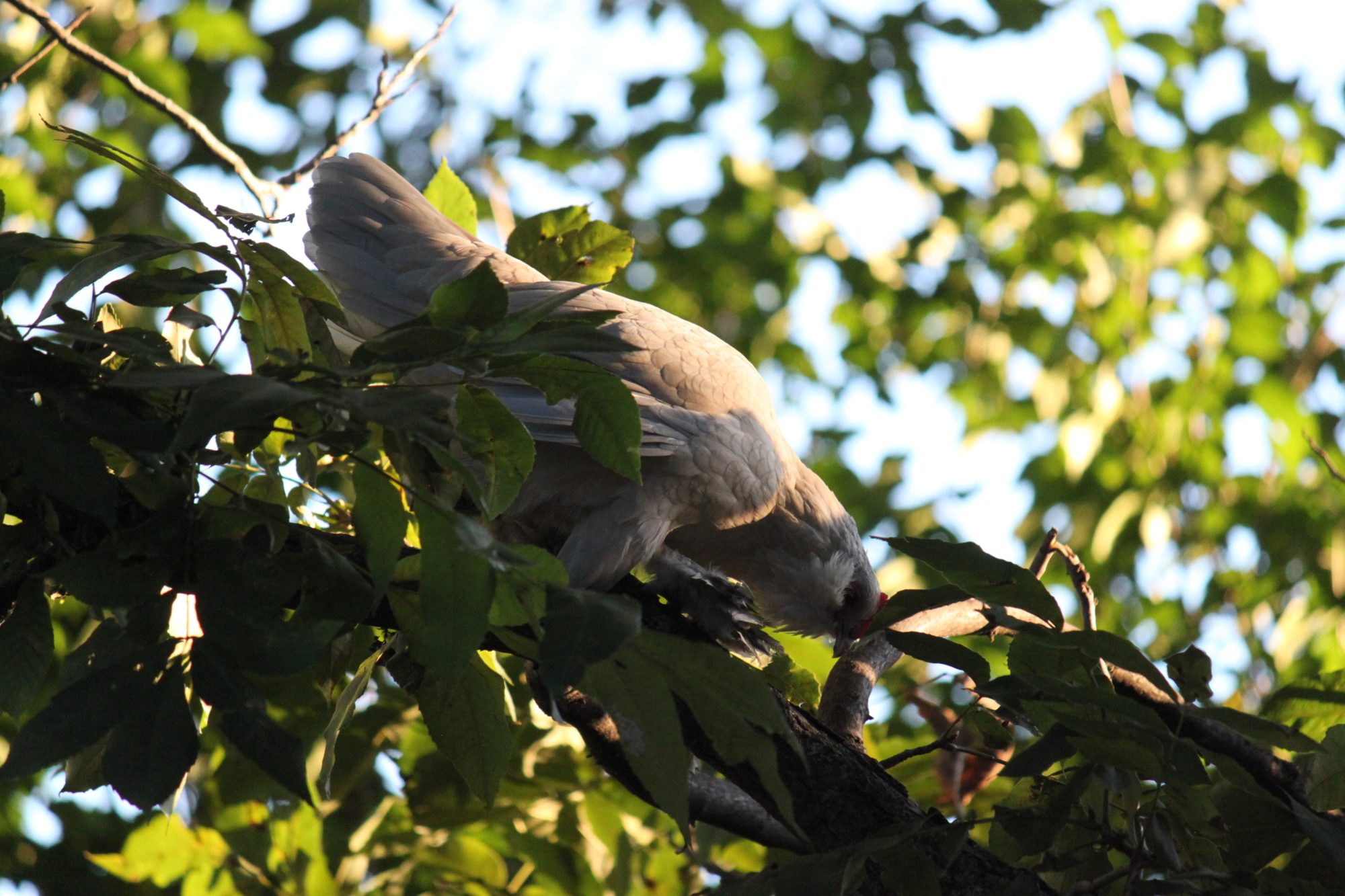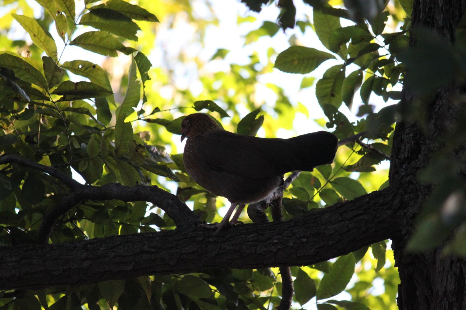 An old English game bantam and d'uccle bantam take up residence in the pecan tree. They roost here at night, and are essentially wild. They're not alone, either... all three of my brown leghorn hens, a welsummer/cochin mix named Fred, an unnamed barred rock mix (that should be too fat to fly that high), a OEGB rooster, and a lakenvelder named Pigeon all prefer to go to roost in the tree at night rather than come inside into the coop. Since they are out of the reach of our primary predators here (and I couldn't catch them even if I wanted to), I leave them to it.