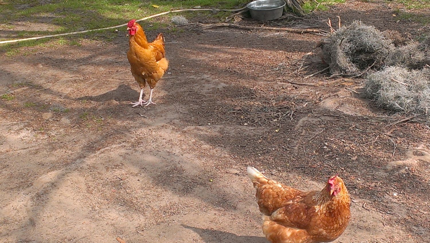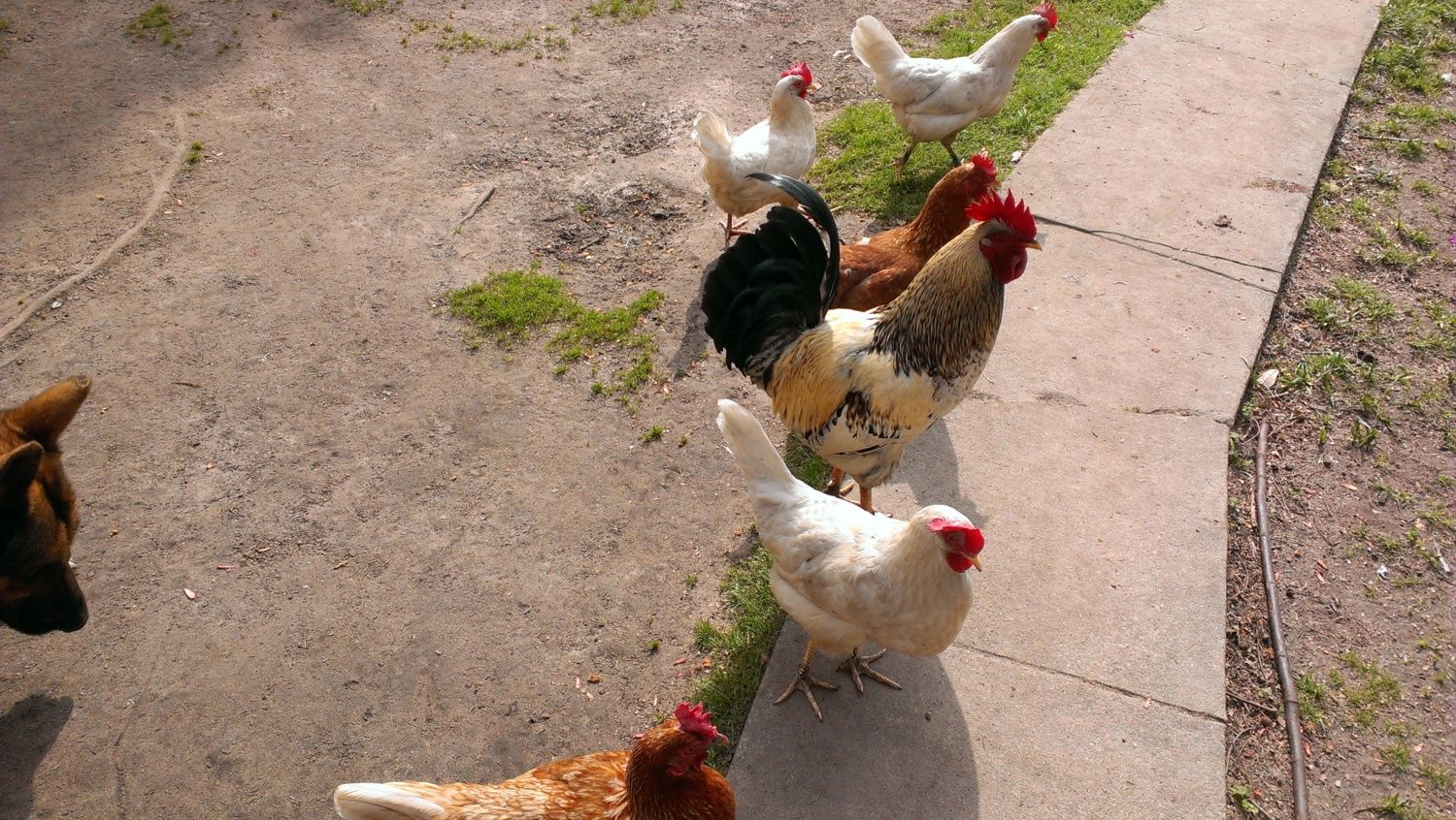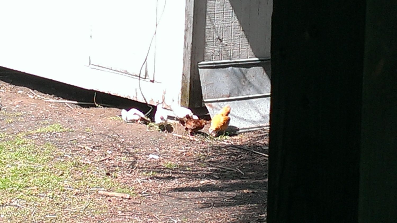 This is the rest of them. Marty is the far chicken, and the near chicken is Caramel, watching her back; she doesn't want Marty to mate her.