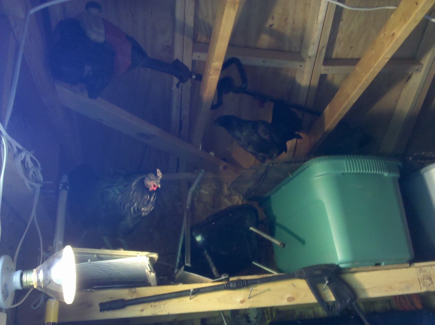 Here is my little Sumatra roo Skiddy with his Lady TT...asking her to play house ..in our shed ...top shelf
