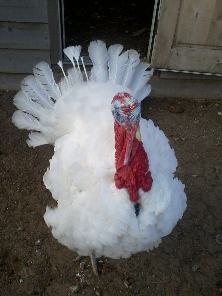 But as the reaper was grim while preparing his fowl for their final resting place, the farmer harkened unto the sound of scratching, clenching claws and feeble feathers wafting the stunned silence. There, cowering among the remains of his brethren, shivered a single white male Turkey. The survivor extraordinaire had thus been spared from the clenches of death--not once, but thrice now! First, the jubilant one outwitted the jaws of Robber Red-furred, and most recently has been spared from the good farmers' Thanksgiving and Christmas dinner menus. "Tenacious T" has become a legend in his time: the great white "Lone Ranger" still makes his bed on the golden straw, despite the battle wounds suffered in the melee of that fateful night.