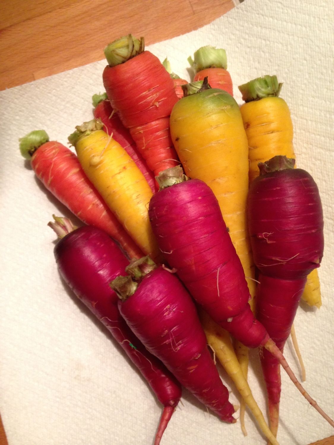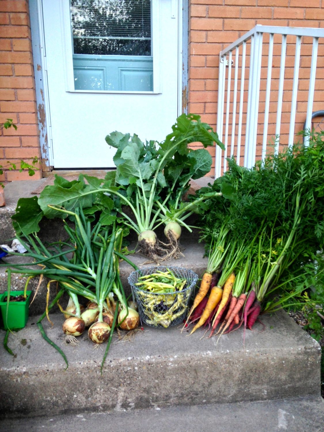 Aren't the carrots pretty? I love these and the flavor is sooooo good. Brynn's chickens are getting all the tops.
