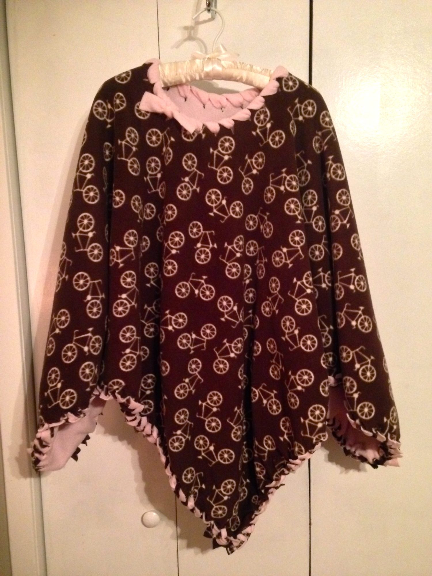 I got the material at JoAnn Fabrics. They are having a sale this weekend so I am going to get more fleece for one more poncho for me. Fleece is 60% off. Can't pass that up. I think I will go for a bright, fun print.