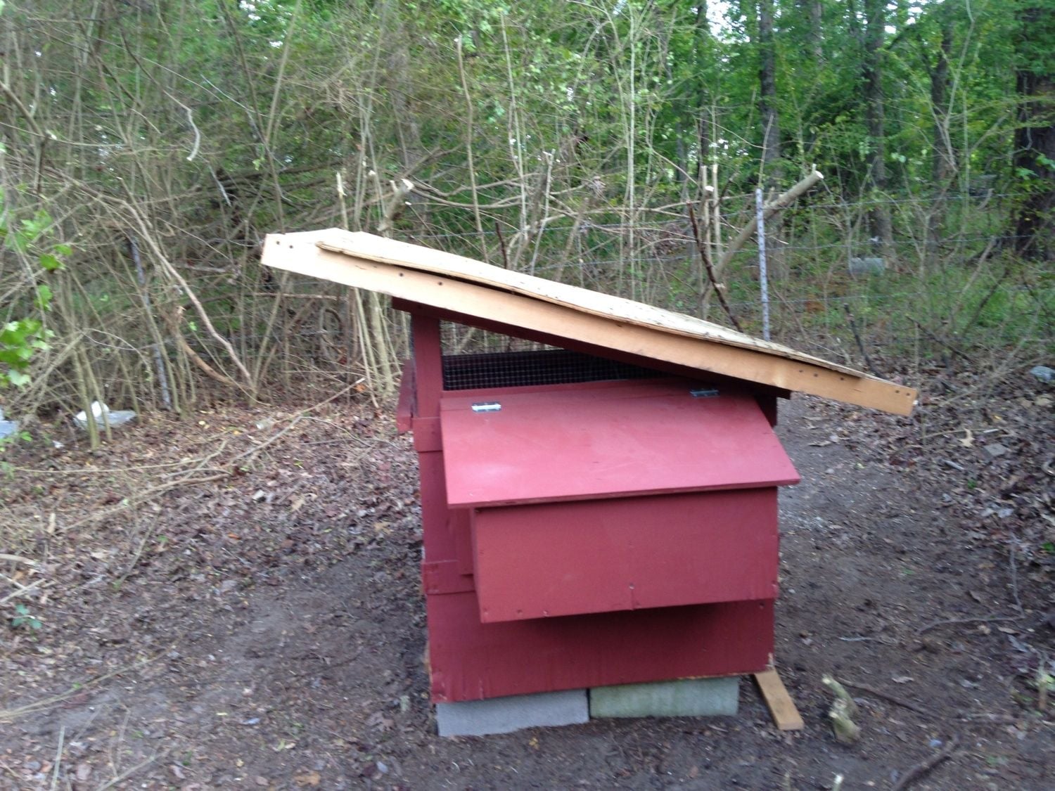 The coop is 12'x8'x8'...in the open air coop/run combined style. We used all found wood or rejected wood (at a steep discount from the Habitat ReStore). We didn't have a saw, so used the dimensions available to us. The roosting bars are felled wood.