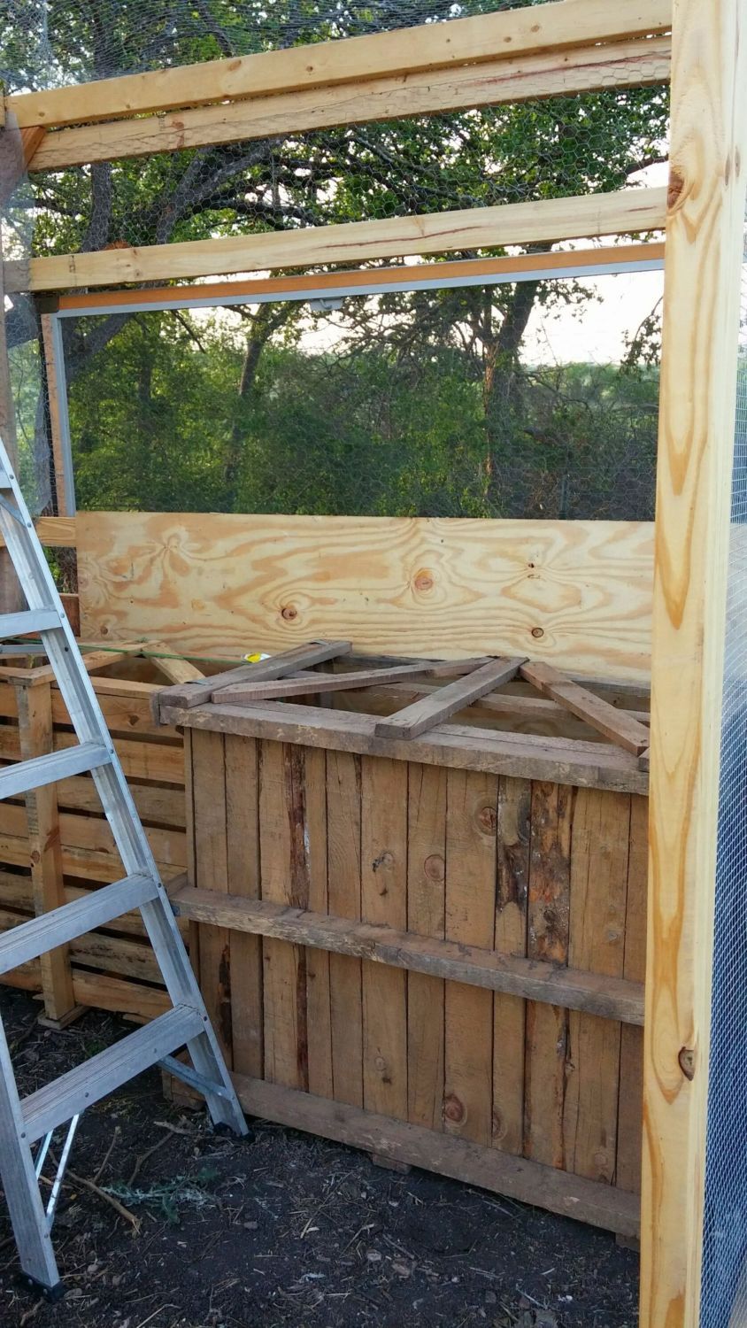 Still to be added: door, latches, more roosting bars, sand, waterer/feeder, and chickens! Also roosting boxes and ladder to the boxes in a few weeks.