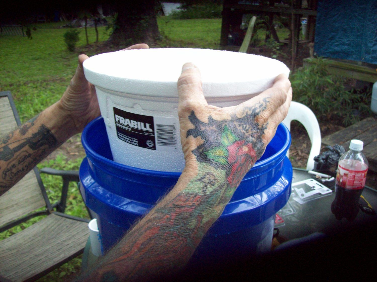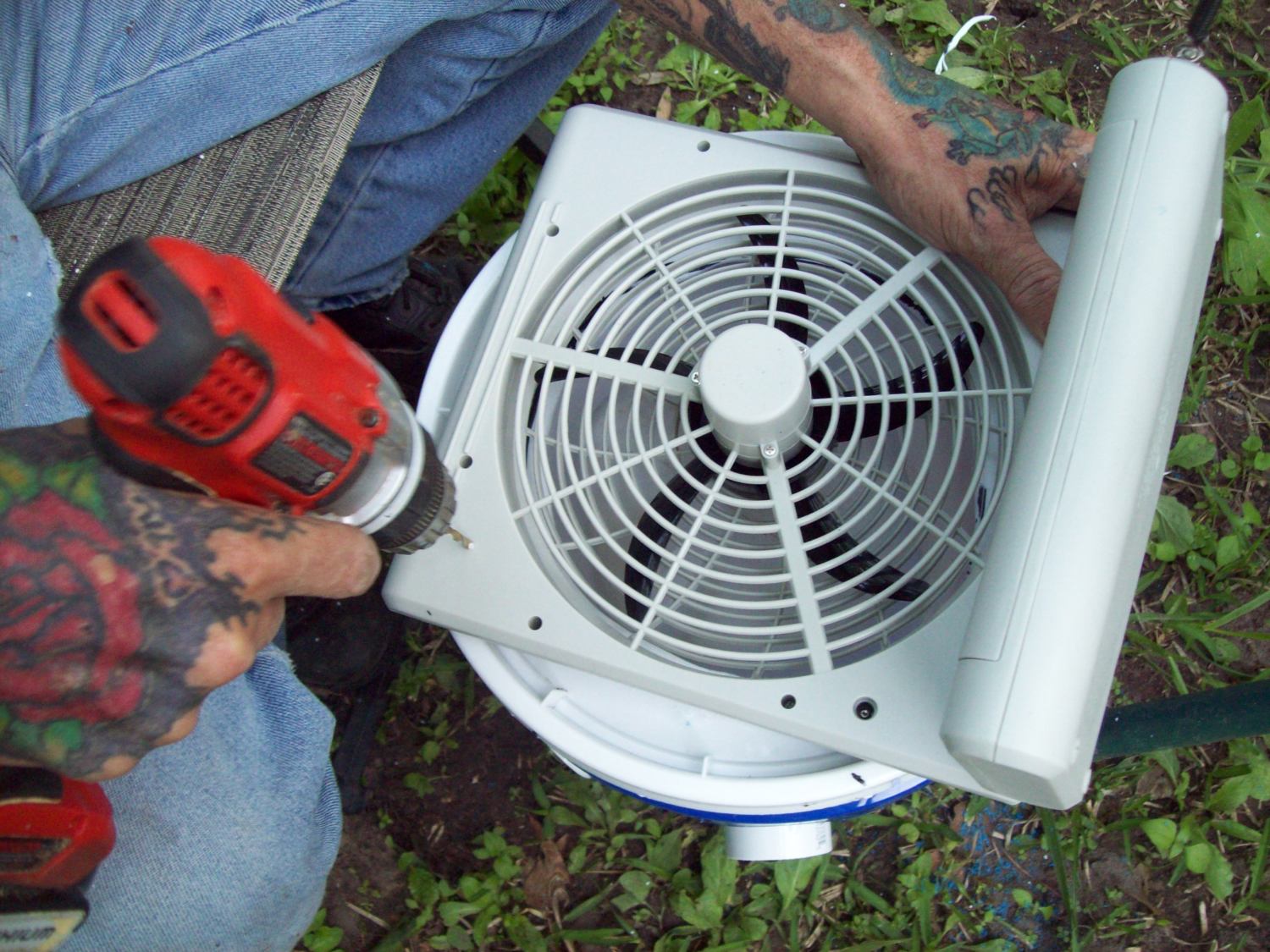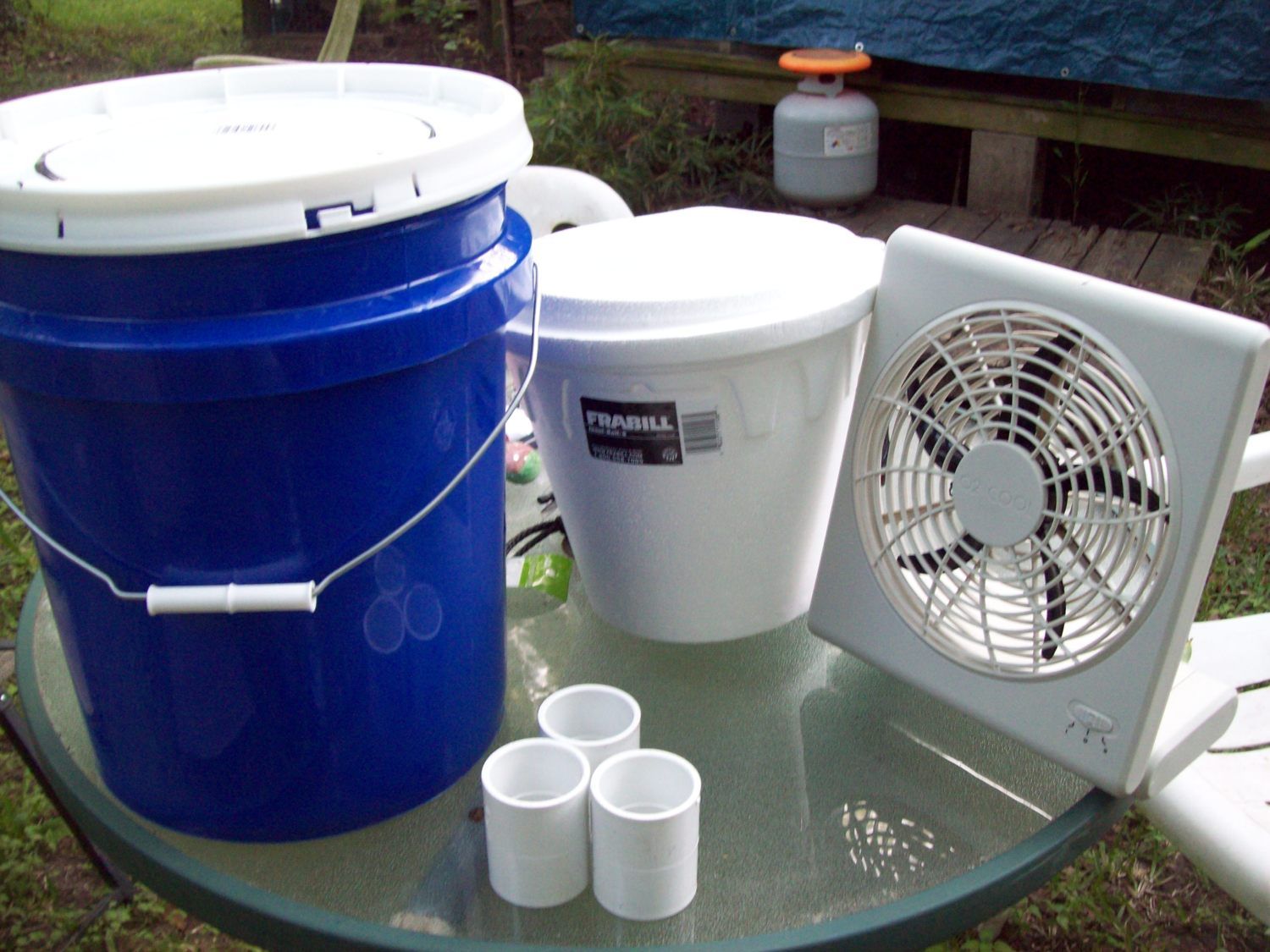 You put a gallon milk jug of water, frozen inside and turn the fan on. it's amazing the air coming out is about 50* This cost about $25 because we went with a 12 volt fan. It runs on batteries, solar panel or wall adapter, so will have back up in case of power outage. Regular fans are cheaper. If you want to try building one go to Utube or google and search redneck air conditioner or redneck AC. There are all kinds of designs, some are bigger. Going to build another with high velocity fan and will be using in the chicken coop.
