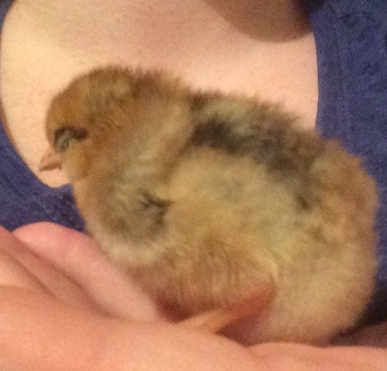 Our only hatch from our second attempt. A cream legbar x Plymouth partridge rock. I ended up buying 2 white leghorns and 2 barred rocks to keep it company.