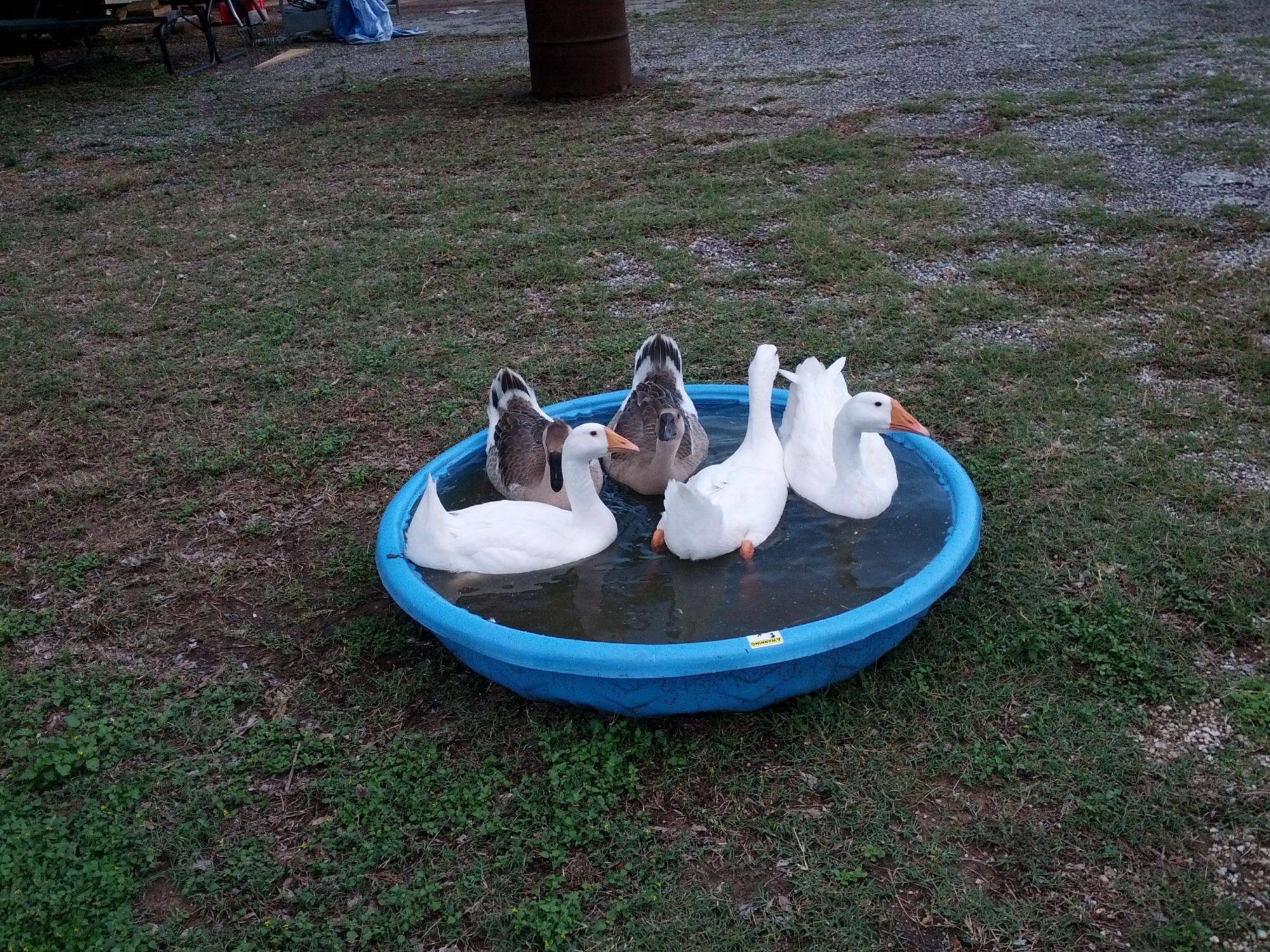 The pic I posted of my geese earlier today was taken a few days ago, to give you an idea of size. The largest white Chinese is 16 weeks, the 2 Africans are 12 weeks, and the 2 smaller white Chinese are 11 weeks old. It's getting harder to tell the Chinese apart, lol. Getting so close in size. Chinese are not generally kept as table birds. But they lay the most eggs of any goose breed, are great foragers and weed control, and make excellent alarm systems being very loud and territorial. They recognize strangers or animals/things that don't belong in their turf and call out reall loud. They are also referred to a swan geese for their grace and beauty.