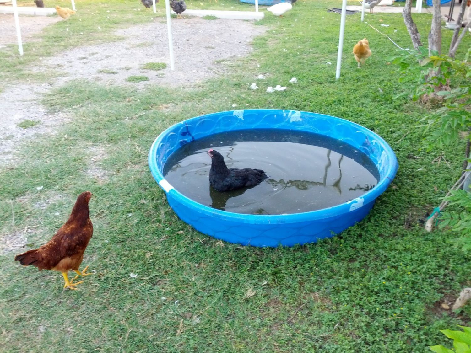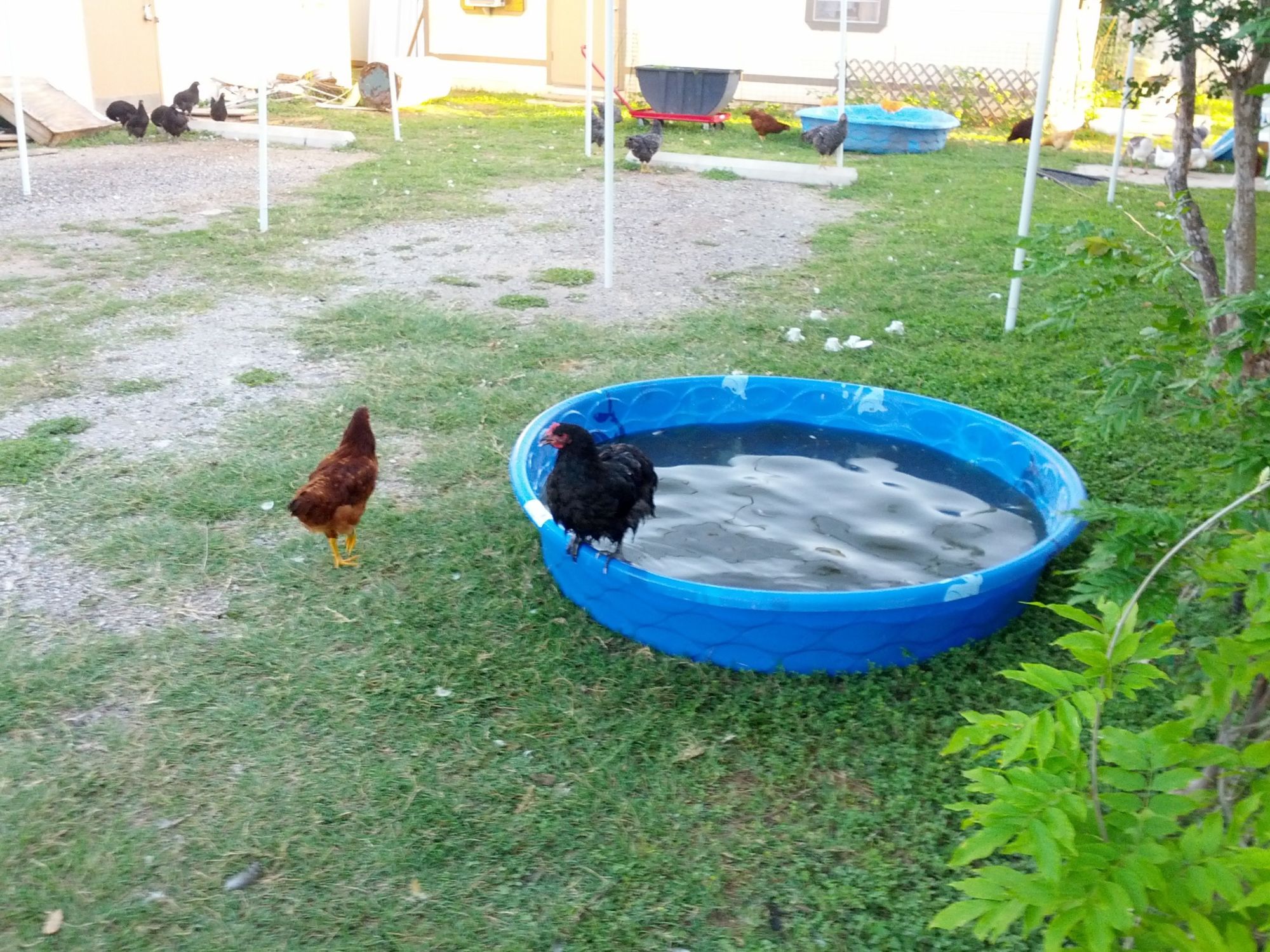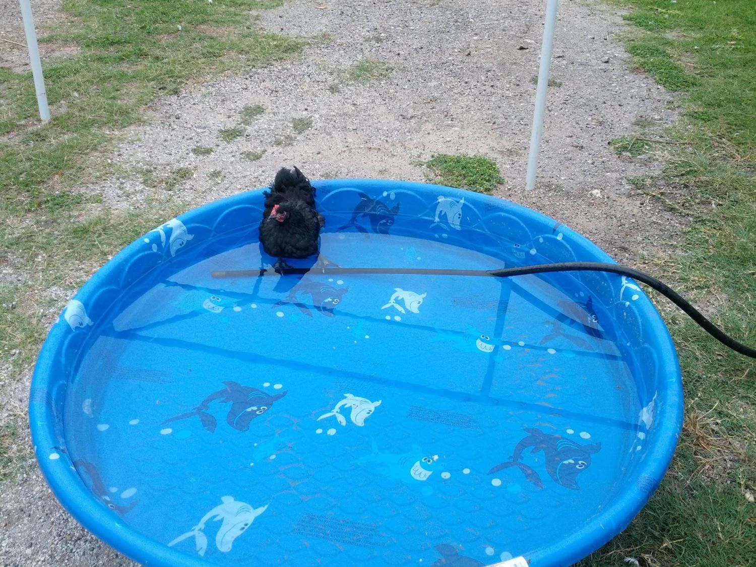 Now that's something you don't see every day.So I had plans from a week ago to pick up a 2 month old Black Orp rooster today. Despite what happened with ShadowKat today I picked him up. He seems to either think he is water fowl, and he has never seen any before coming to my house, or he likes to swim. Ever seen a swimming rooster? This was a first for me.![]()