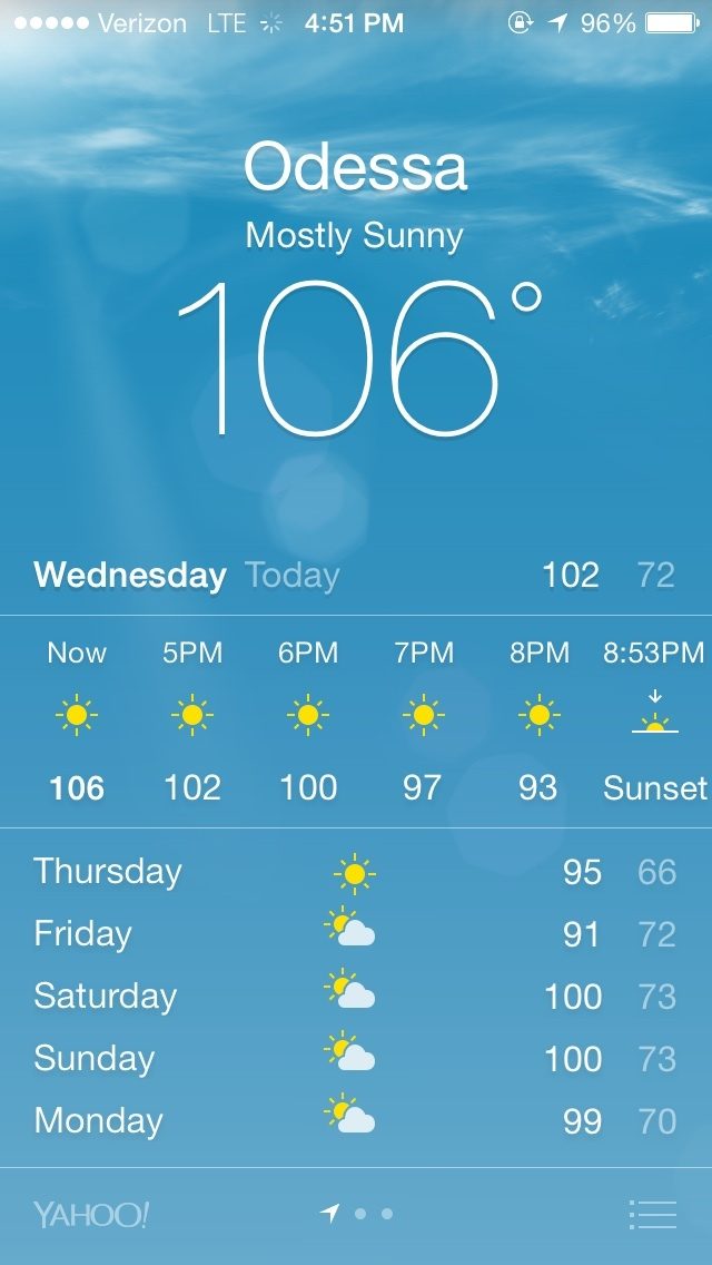 I hadn't been out since late morning, when I went back outside around 4 it was like walking into an oven...It was a heavy heat, no humidity...usually I would say dry heat doesn't seem to be as brutal but that was NOT the case today. I miss humidity...
