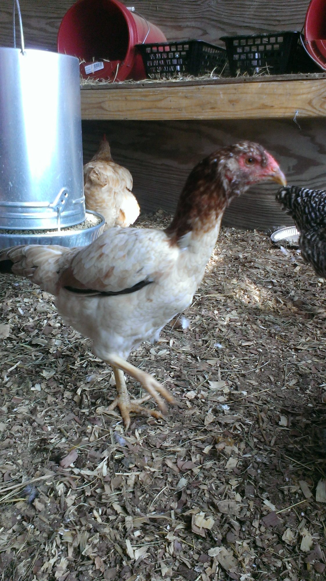Probably red then, which isn't too bad, adds a little splash! Mystery chicken is a fabulous name haha.Areolyn, I do not know the parents, unfortunately. She's starting to grow some light brown feathers. At this point she's more of a brownish red. Her sisters are just plain black except for their cream tummies. Hehe, mystery chicken..... hey that's a great name!![]()