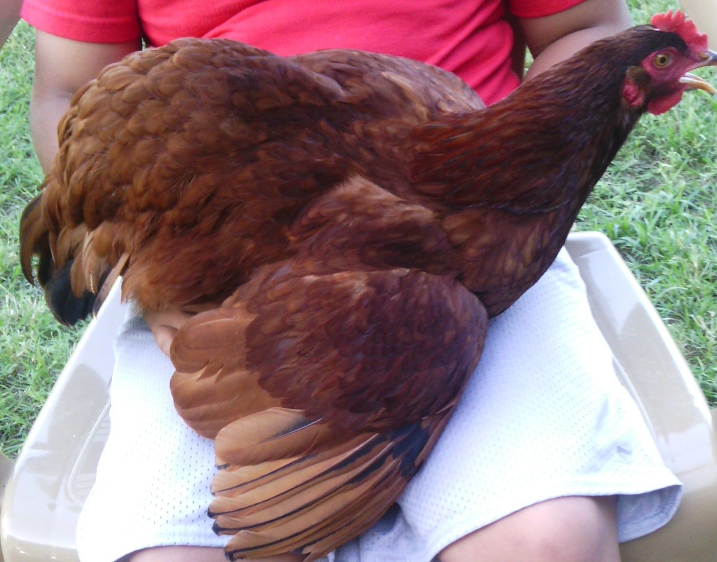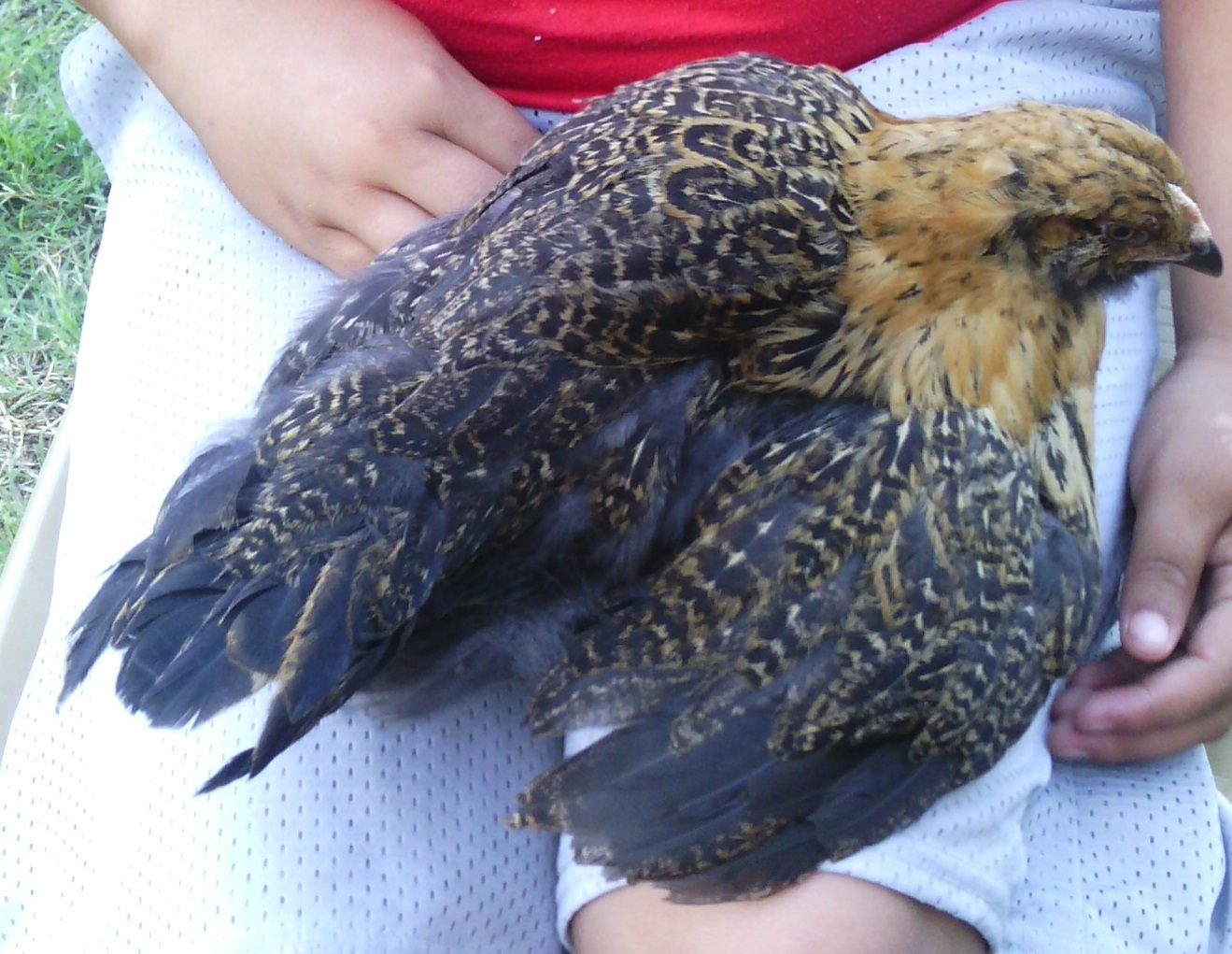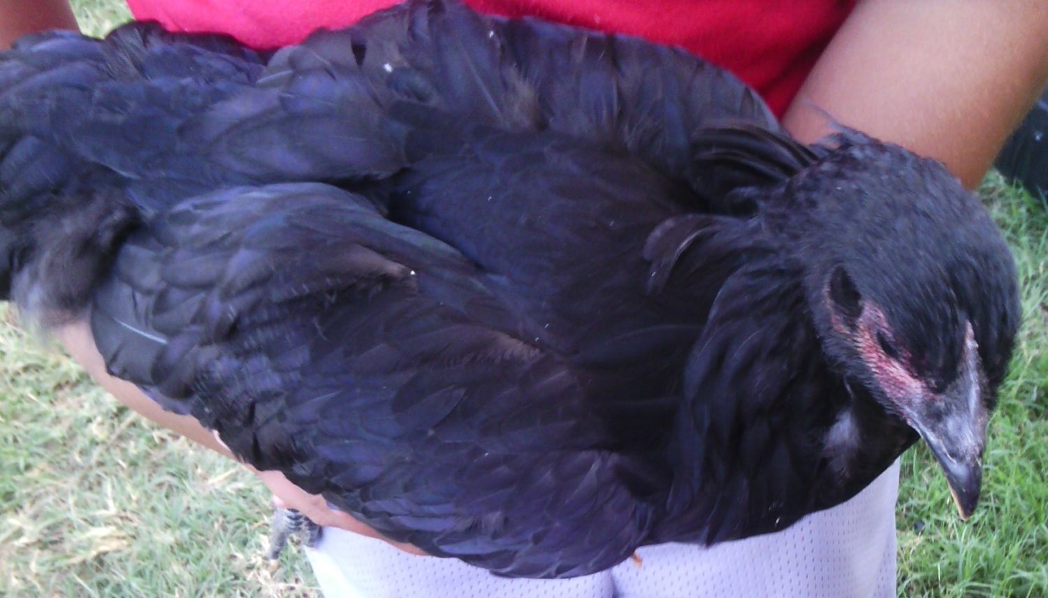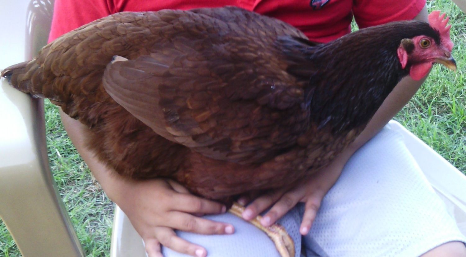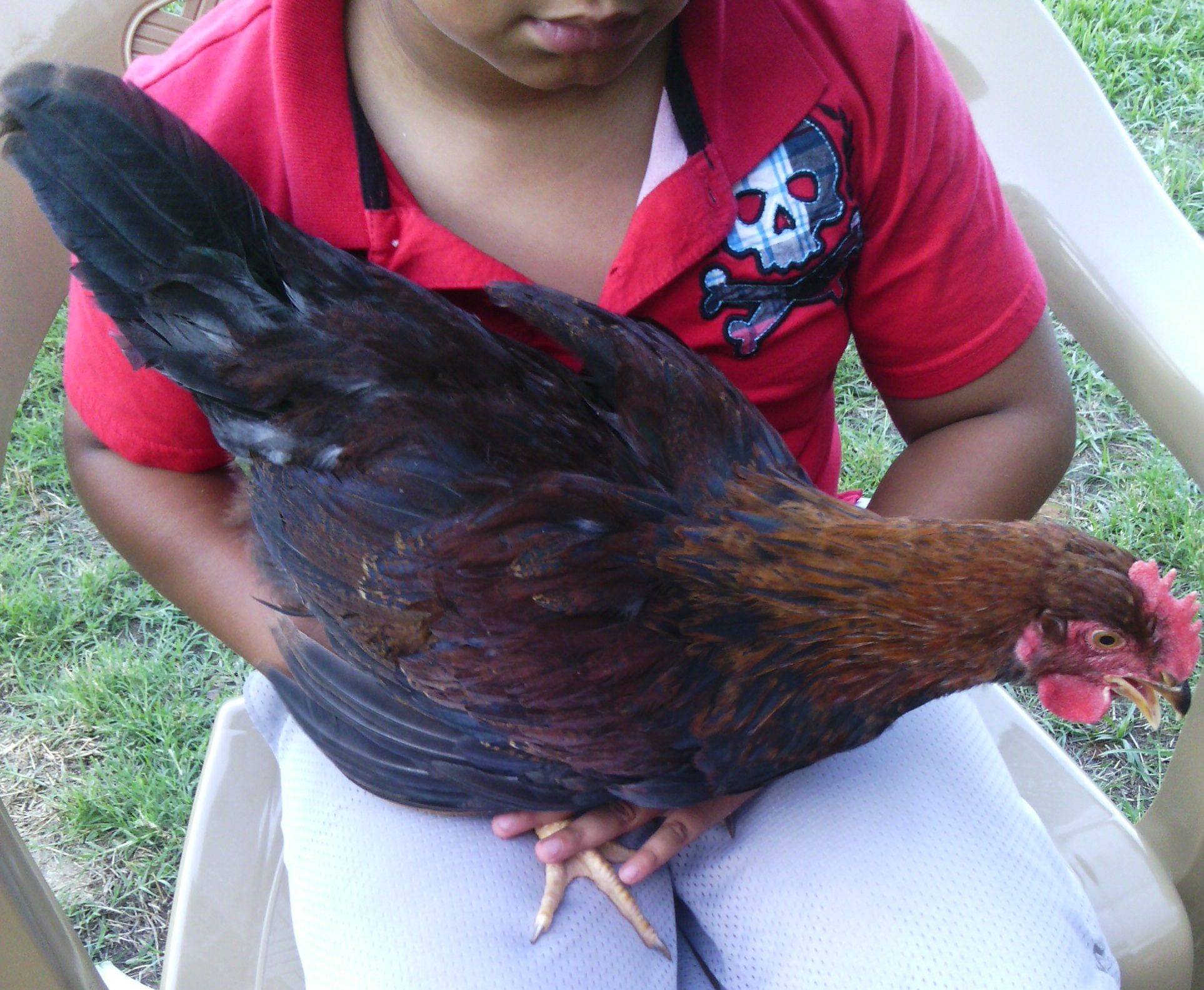 Here's the pictures finally! Sorry for the flood. Had some help today from my great nephew and he was a huge help in holding them so I could take the pictures! Red Girl (rhode island red) Booster the Rooster (rhode island red) Fluffy Butt (rhode island red) Cranky (rhode island red) Snow Ball (pearl white leghorn) Snow White Trouble (white leghorn) Caramel (easter egger) King (big orange rooster of some sort) Who (easter egger) Marshmallow (easter egger) Goldie (same thing King is but I don't know what that is) Twix (easter egger) Gertrude (easter egger) Eli (Welsummer cockerel) Destroyer of Worlds (bantam something) Killer of Men (bantam something) Sparky (Jersey Giant not sure of gender) The whole setup. Two coops one big run. You can't see it but there is netting over the trees in the front and electrical wire around the edges. All the easter eggers are pullets, or at least that was what I was told.