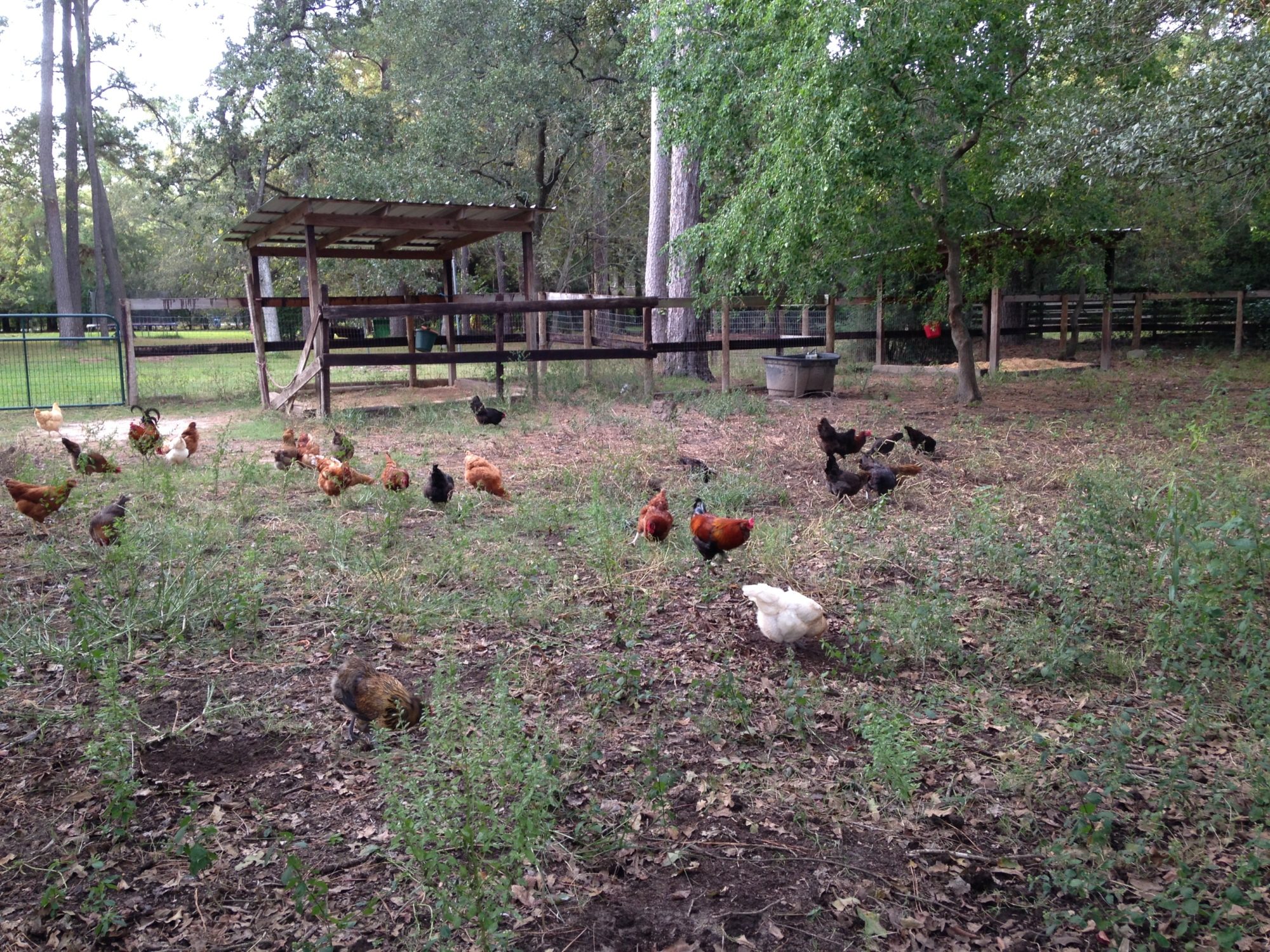 My girls are loving this post rain weather. The bugs are plentiful and since my last boarder moved out and I haven't managed to snag a new one yet, one of my pens is getting overrun with woody weed. The girls have been out there each afternoon for about a week and wow, I can really see the difference. You used to not be able to see ground under the weeds! The young Yankees haven't braved the world this far from the barn yet, but they came close.