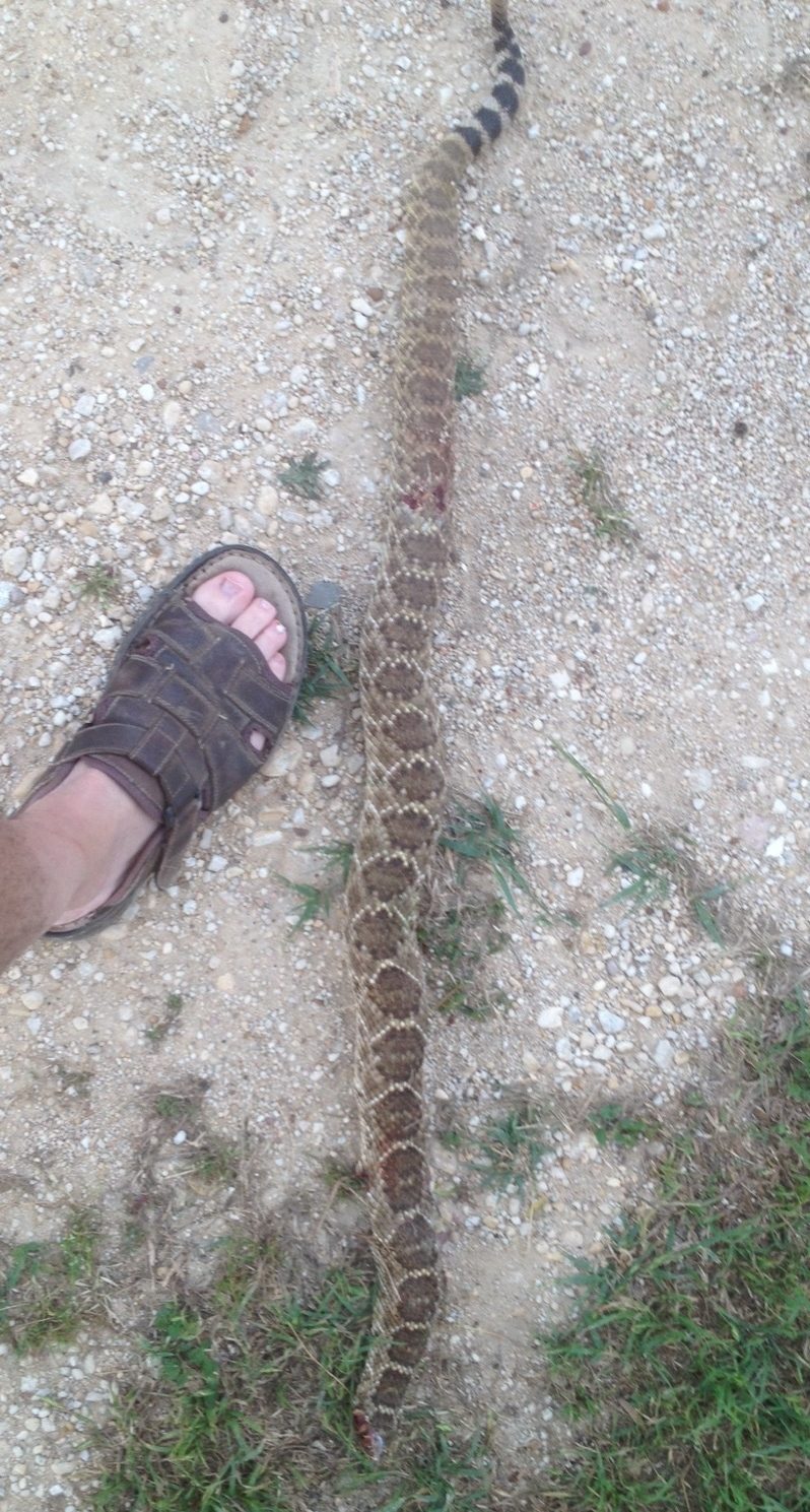 Magnum OK had their rattlesnake roundup not too long ago. Ones I've been seeing at my other pasture are green tinted the past couple of years. I guess it's a Mojave rattlesnake. Neurological venom. Glad you got that booger.