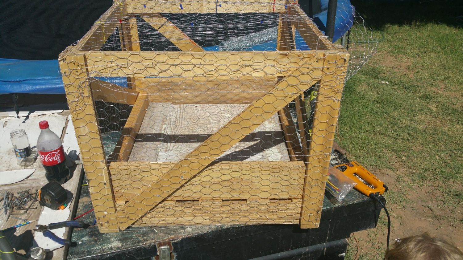 You might want to keep it close to the house, or on the porch, because you used chicken wire. I would make it like that, because it's easy, and keep it close to the house, because we have Coons.