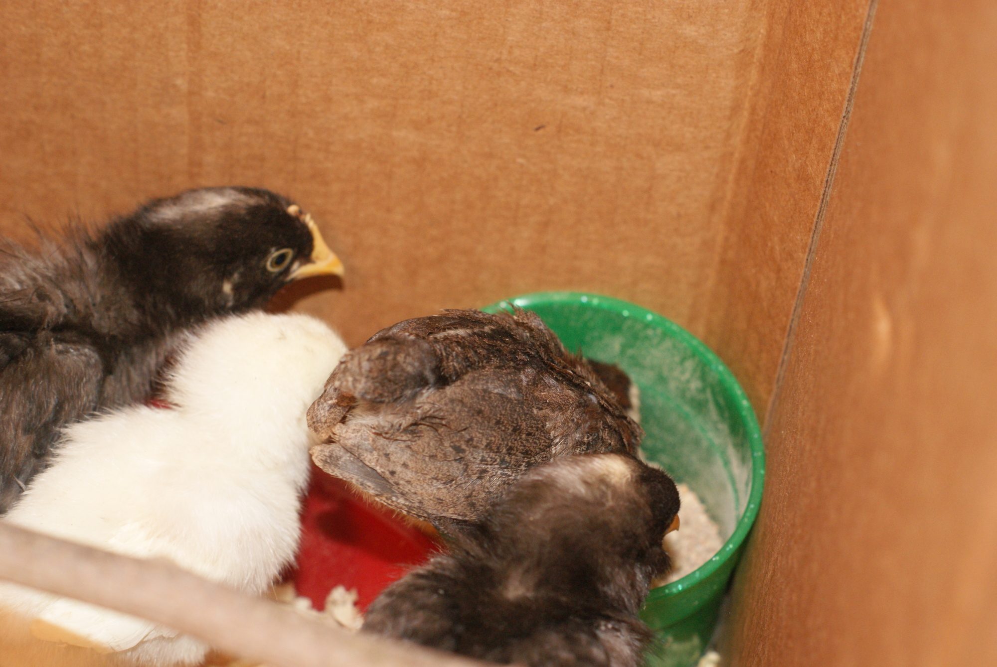 Oh. Yea, I've had all my babies in the house until about 3 weeks. (They were 6 ducklings and getting too big for the tote I had them in. 4 Pekins and 2 mixed.) Monday they will be 5 weeks and I may introduce them to the 6 bigger ones and the 4 hens.Okay. I would have said inside, but most people don't want the baby chicks inside.
