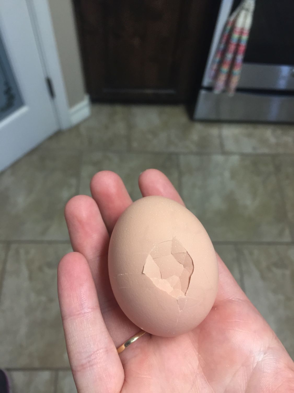 You figured that one out really quick, that kind of hole took me a little while to diagnose the cause  -- I got a series of eggs before I realized that it was happening the instant they were laid when they hit hard surface.