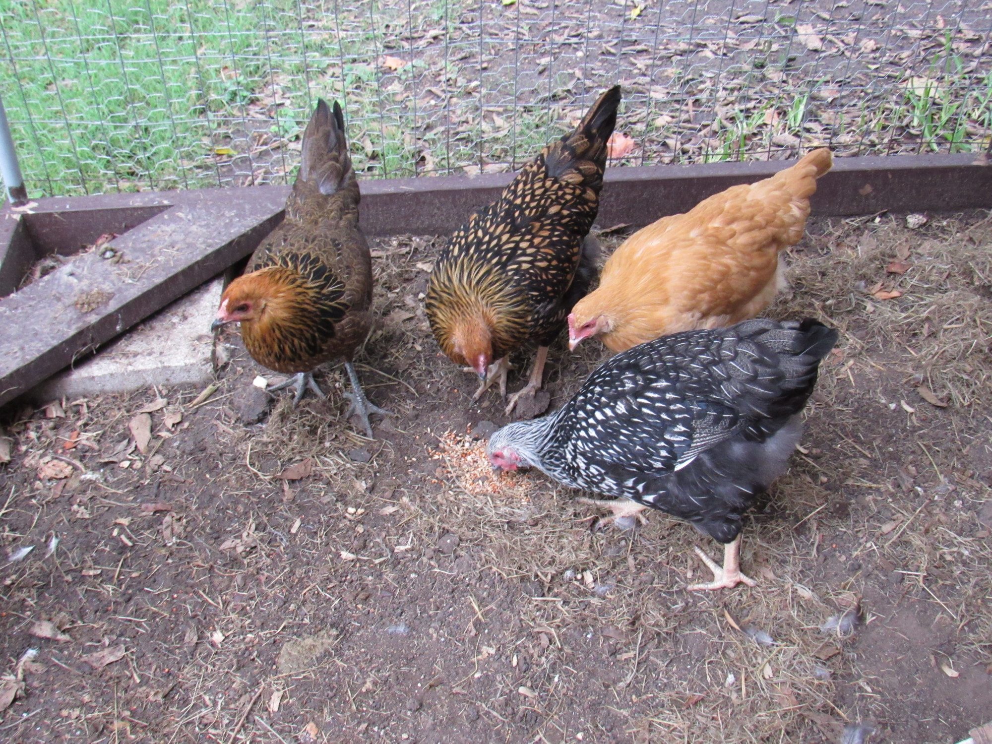 I'm not sure what I did wrong uploading pictures from my phone, here's one that almost shows the group. There are 2 guineas (the 3rd got out on the first night and we haven't been able to find it) 2 Americaunas (or EE), a red sexlink, an Ideal 236 (I think that's the #) and I believe a New Hampshire Red and a Barred Rock. From my horrible pictures, does that look about right? Also please ignore the wings, after the Guinea flew out my husband went a little crazy with the wing clipping, we had moved the shade cloth to a different run and the top isn't covered yet (and we are hoping to let them free range for a few hours a day after they are use to us).