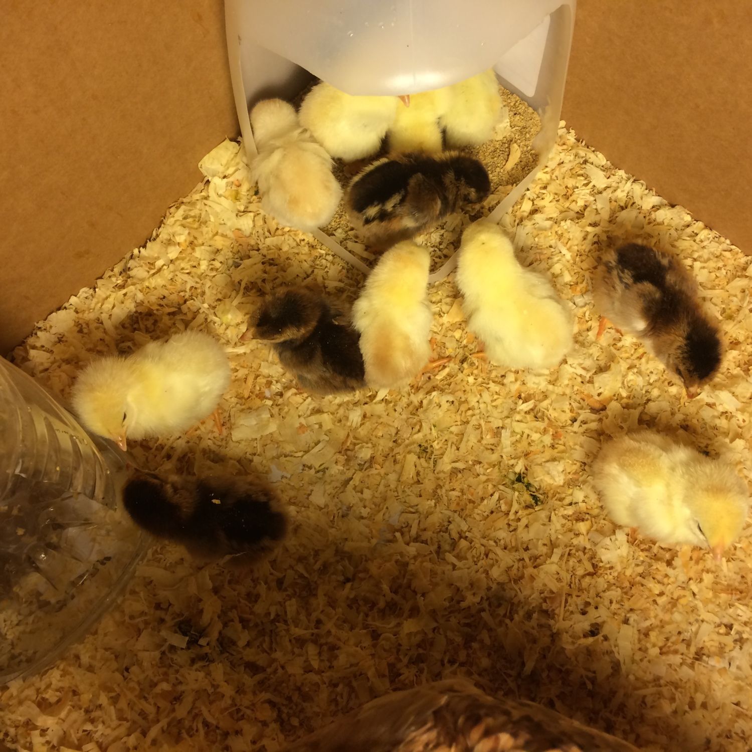 Here are some 1/4 shamo 3/4 thai chicks that were hatch on Jan 21, 2016. There are 8 golden crele and 5 bbr.