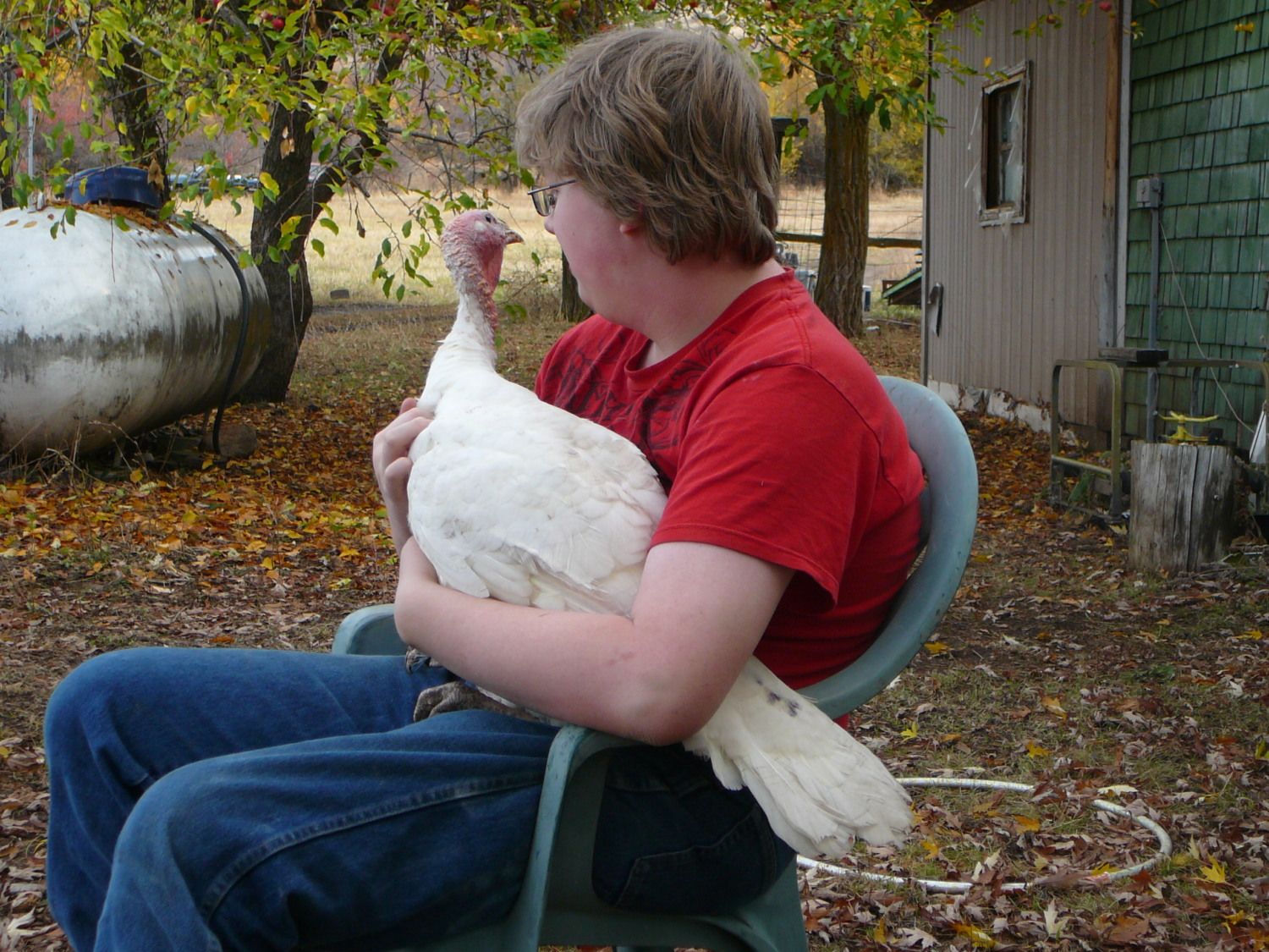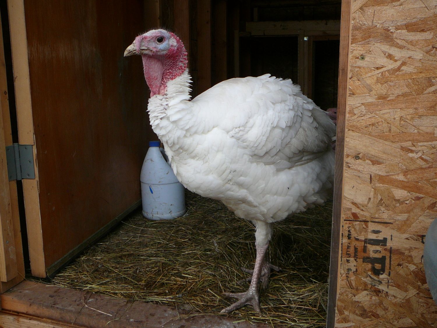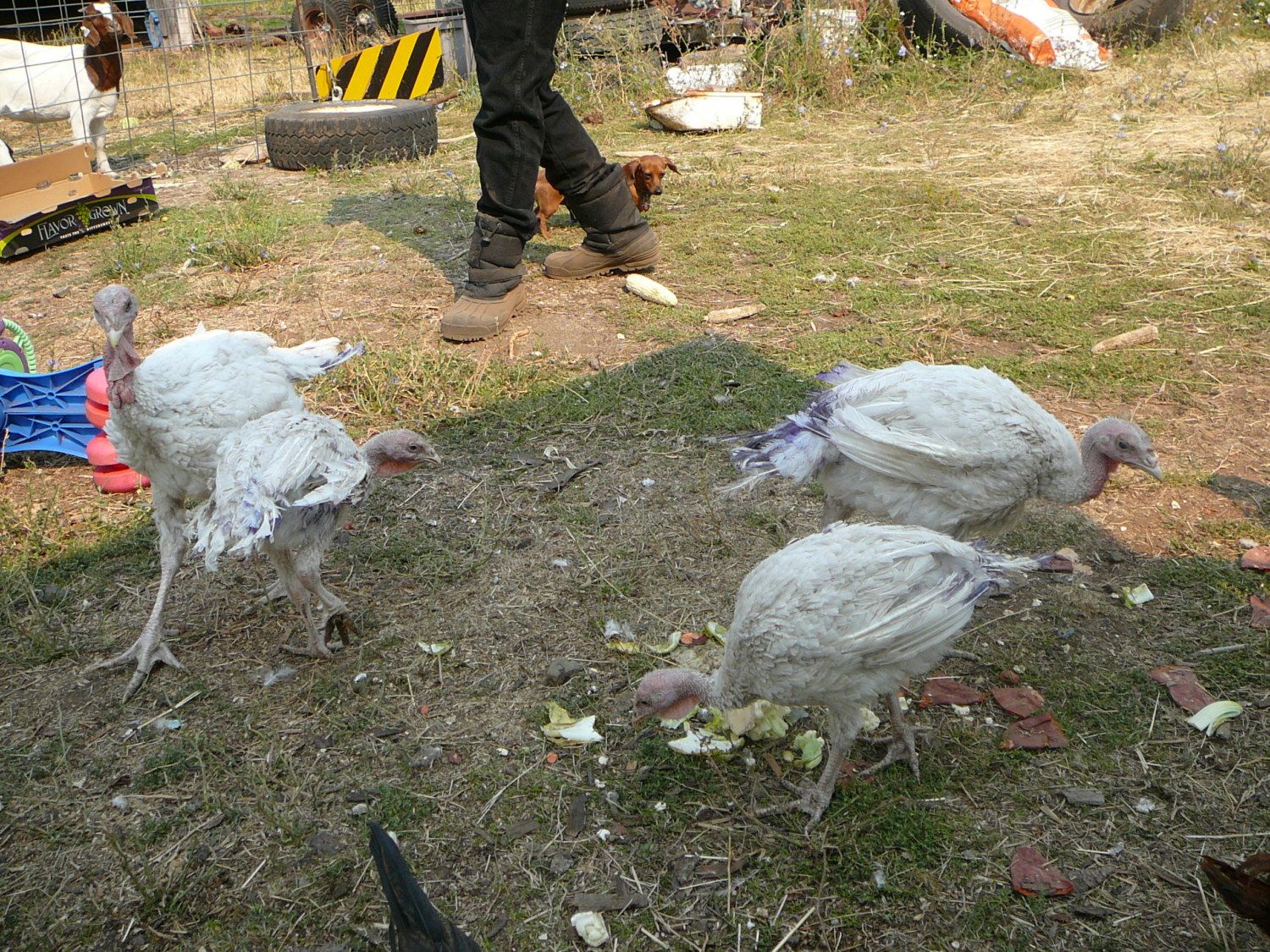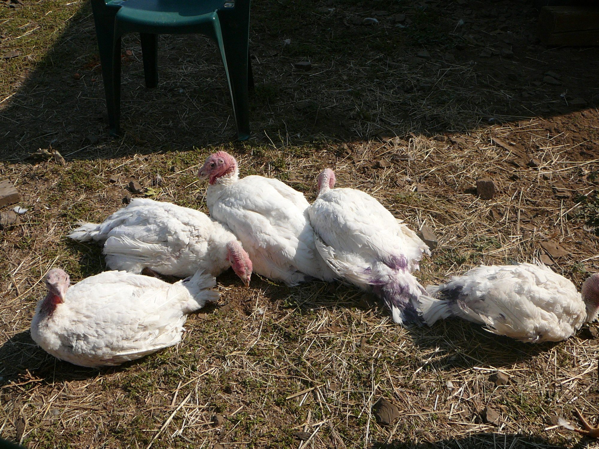 Excuse the purple tail feather - I am not sure if they are pecking or the chickens are pecking, but we have to keep their tails purple or they get pecked. Also, since they have been free-ranging they have turned from white to dusty grayish white LOL.