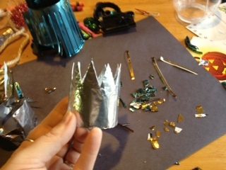 Then I cut strips of gold (from the twix wrappers) to trim the bottom of the crown.