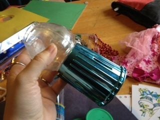 Then I took the shiny gumball machine, and broke a big chunk off, and then cut it into tiny "diamonds, squares, triangle" whatever little pieces with the scissors: