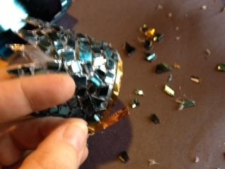 I glued all the little "jewels" to the crown with my trusty glue gun... "mosaic style".