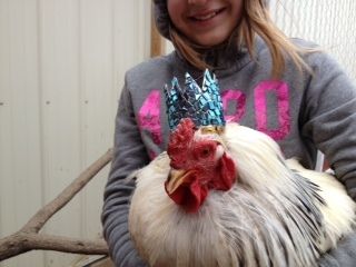 And now modeled by our Light Brahma Rooster "Big Daddy" (the big daddy of our hatch-a-long eggs!)...