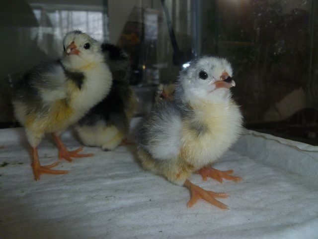 I now have 4 white faced black spanish chicks, i recandled the remaining eggs and we have 2 late quitters, and one who has just barely started pipping a few hours ago. hopefully that last one gets out soon or his siblings will be a full day older than he is! anyways here is a pic of them today :)