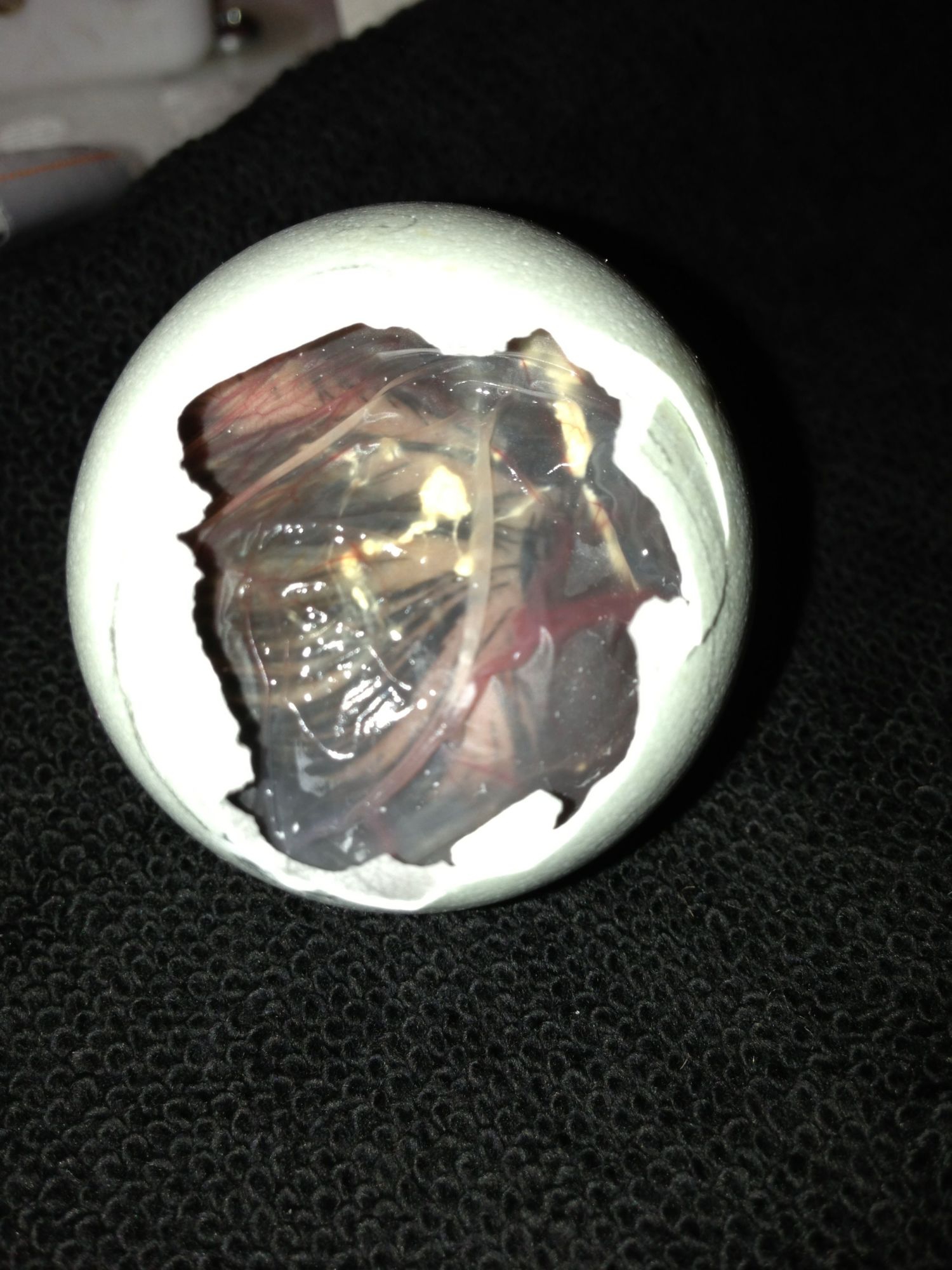 Okay... This is the Araucana (sp?).... Put wet paper towel over the end of the egg and put it back in... Thoughts?