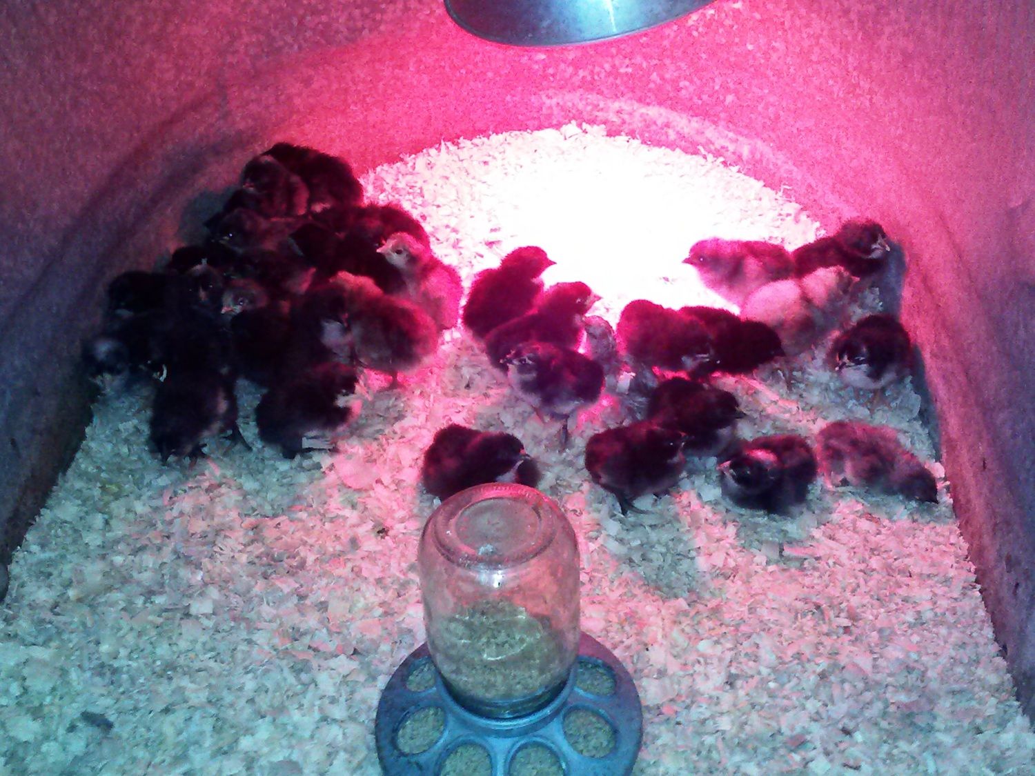 here is a pic of the two batches 1 from the incubator and another from the eggs I gave my broody. She was not pleased with me for moving her to get this pic though.