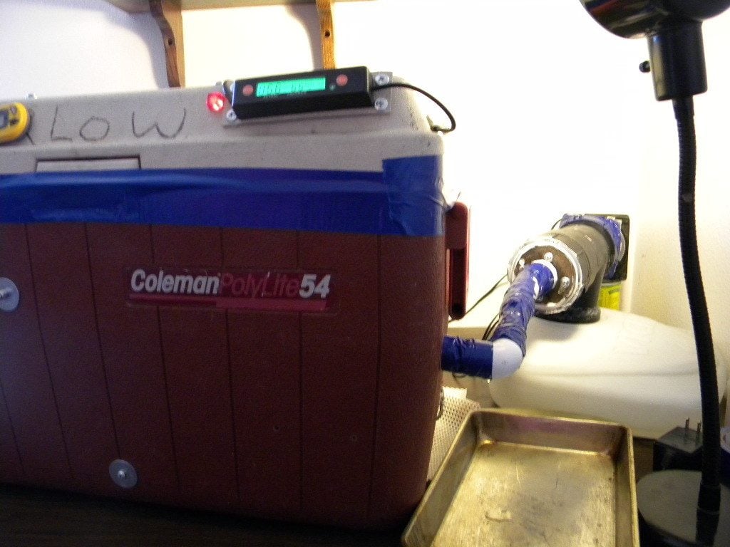 We ended up changing the way the humidity was coming in. You'll notice in the two above the container with white intake and white/blue output. The container was metal and