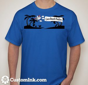 I will draw from a hat the name of one person who answers the questions for me and he/she will win a CocoBeachPoultry tshirt