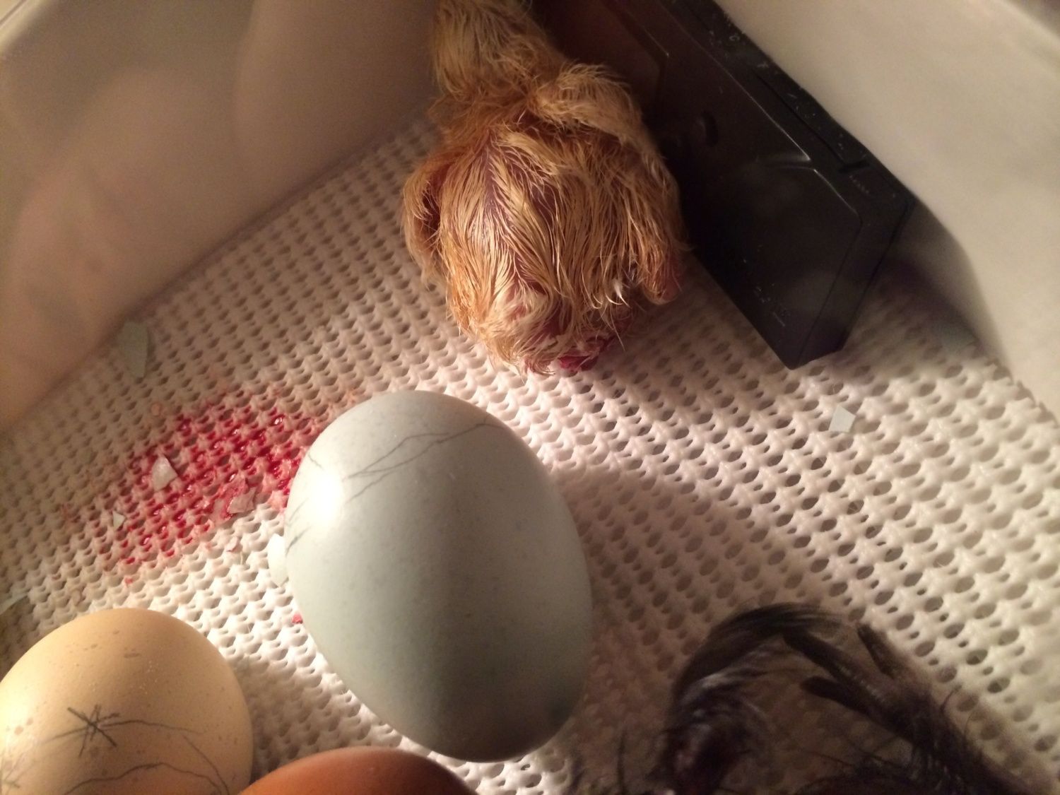 I have 1 little blue or Lav Ameraucana, 2 BCMs, 9 Speckled Sussex (out of 12 eggs, 11 which were viable at lockdown)...for a total at his point of 12 chicks out of 26 eggs that were on day 21 today. I added 5 other eggs that hit day 18 today just a while ago, and saw the pip on the Birchen Maran egg not any larger, so I opened it up a little bit when I heard the chick peeping inside. it is resting now, and still peeping softly and hopefully will get the rest of the way out soon. They are all in the brooder now, to let this Birchen baby rest and hatch peacefully, hopefully.