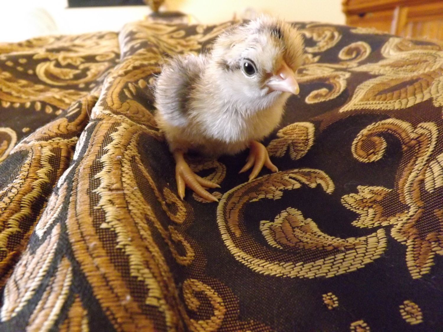i got one tiny adorable chick today...the most adorable little black with spots of yellow chick...also has really adorable feathered legs and feet.