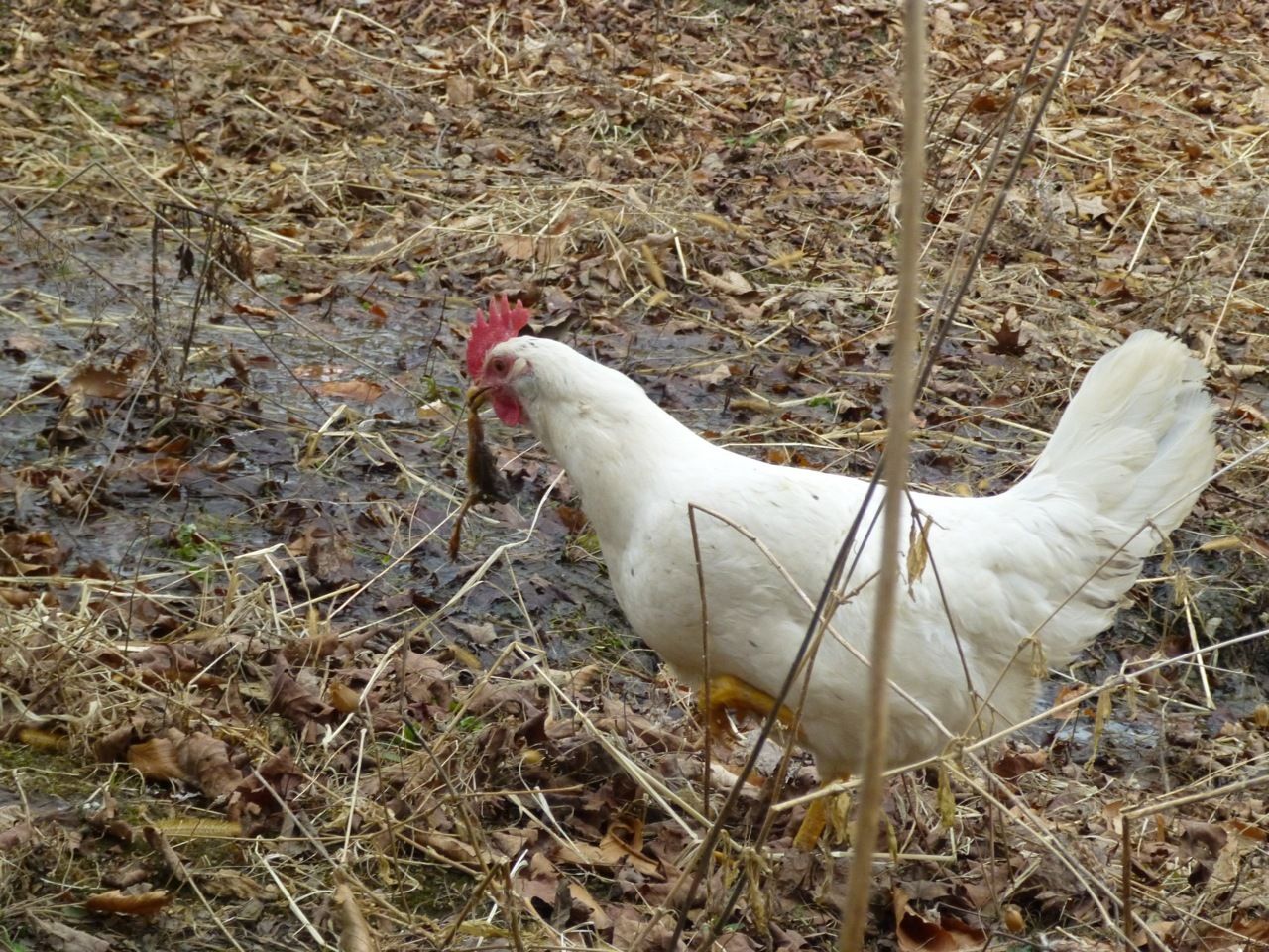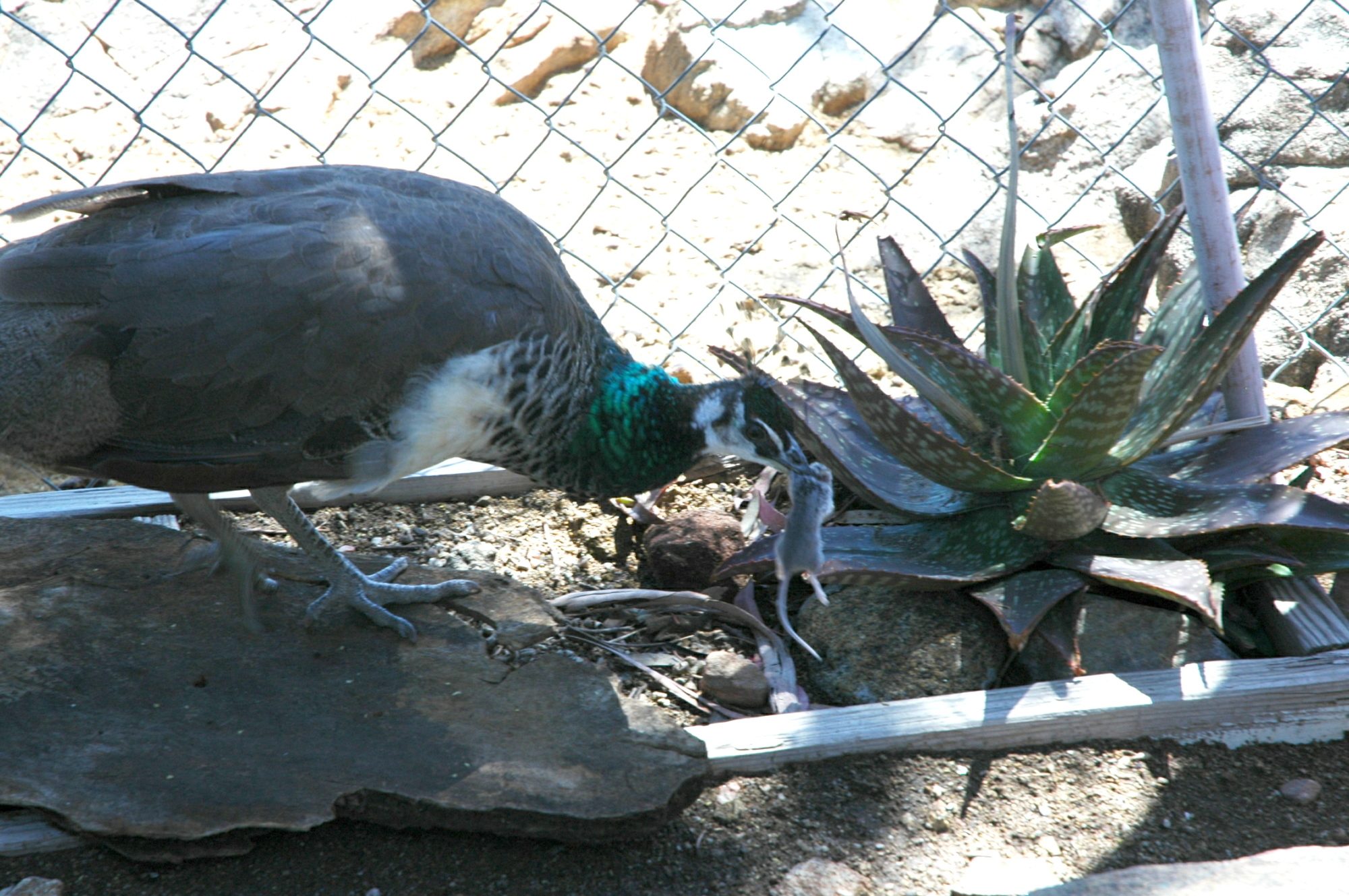 I just got a bunch of photos of one of my cali-whites eating a frog. She smushed it up a lot and then swallowed it whole!A little while ago, everyone was chatting about their birds eating small animals. I thought you would like these pictures that my kids took the other day of their little peahen. (She is not yet full grown.) They are not super clear, they were taken on the fly....