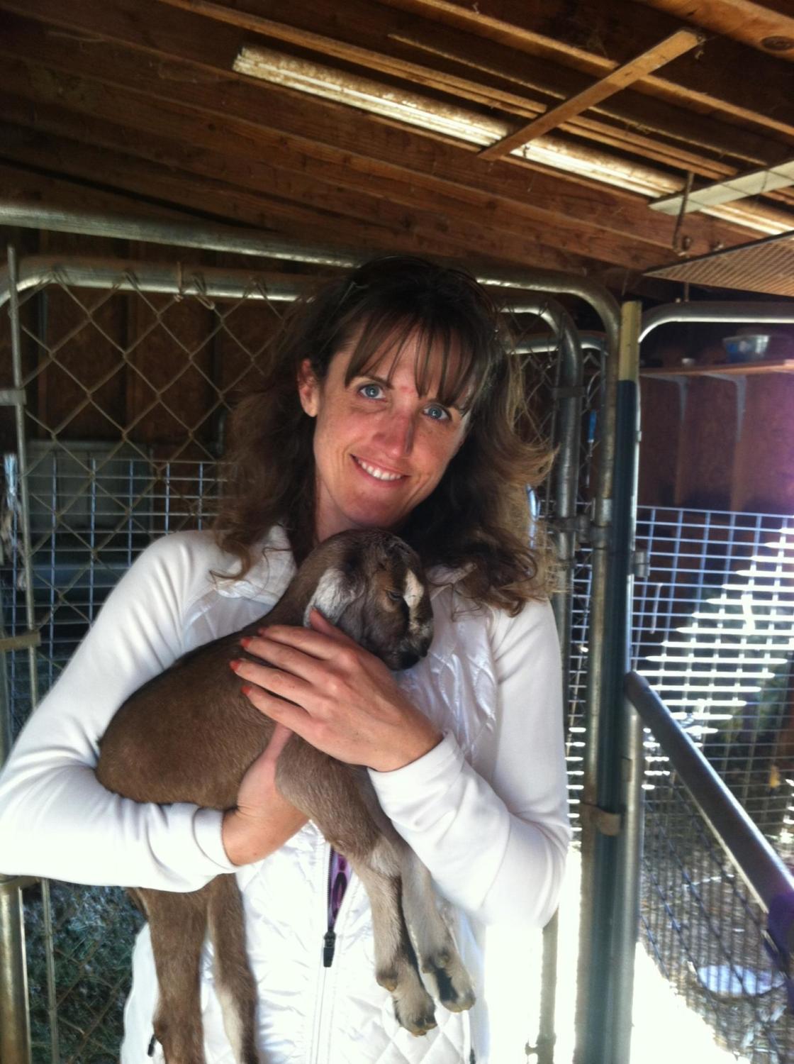 This is the most current picture of me. Messy hair from the gym, but this is me, playing with a just born doeling. I have a milk share, as I can't have goats right now.