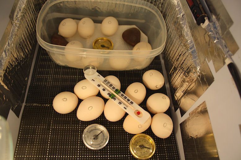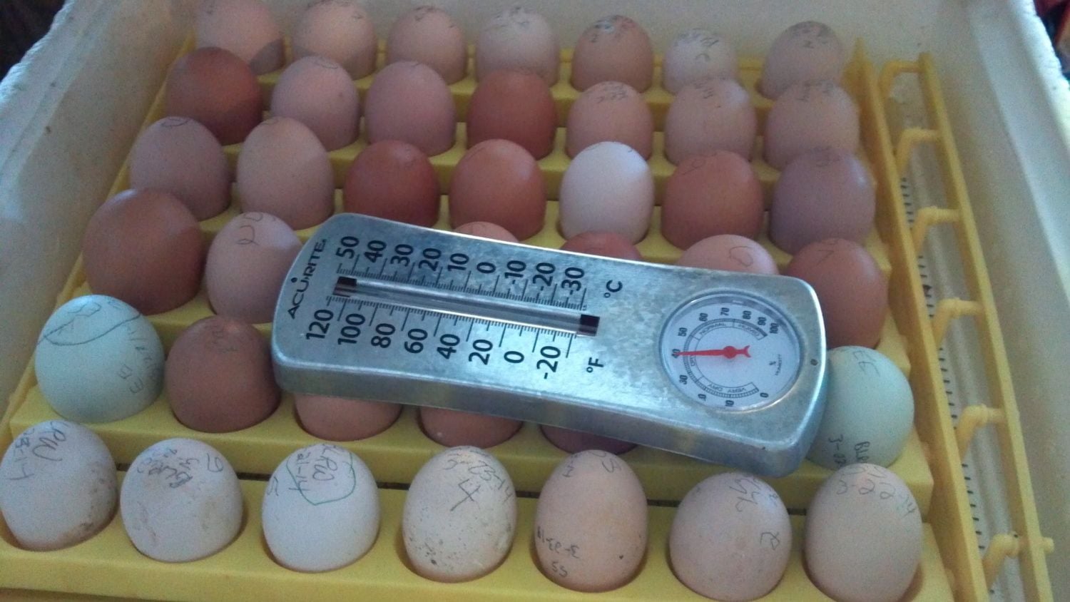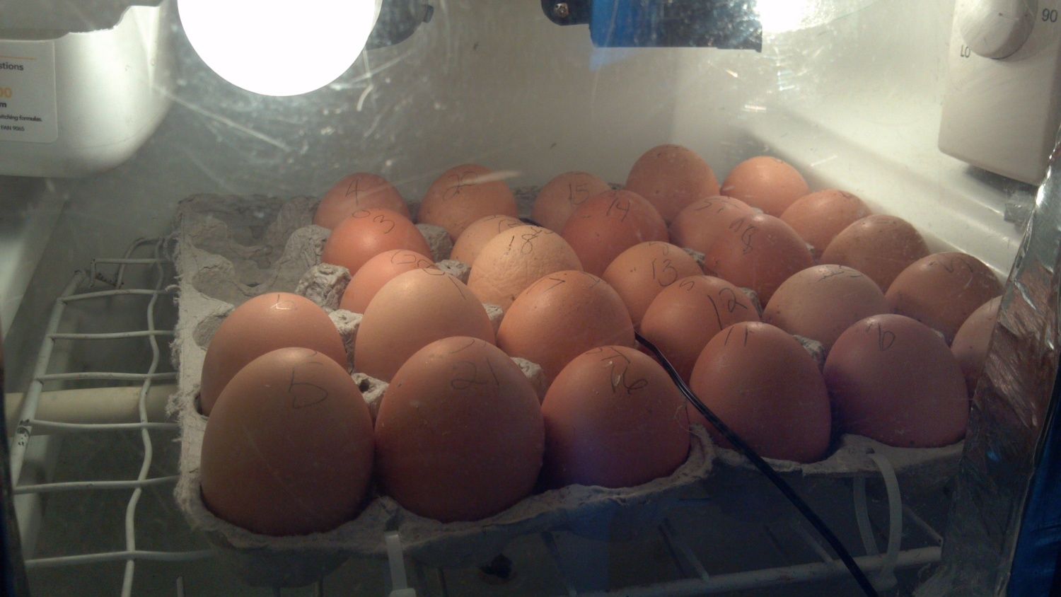 10 new eggs set today for the BYC Easter Hatch-a-long. Top eggs from an earlier batch, they're at day 14 already.