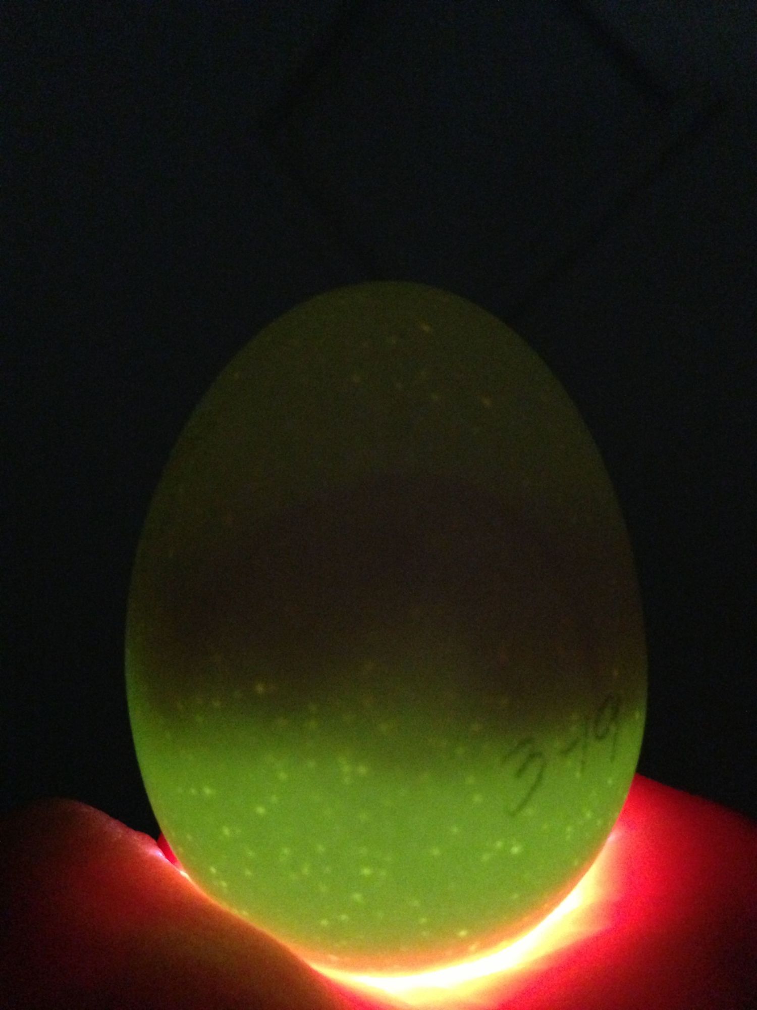 Well I got some opinions from my fb groups also and ended up tossing the bright speckled one and cracking it open to inspect what I was seeing. It was a very warm very runny egg. Nothing else at all.