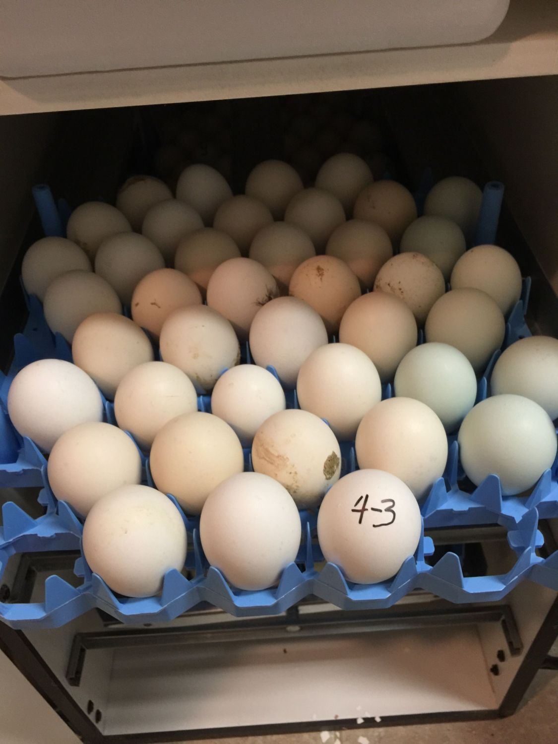 This tray has Silver and Golden Campines and EEs (non-recognized Ameraucanas.) There are 41 of them.