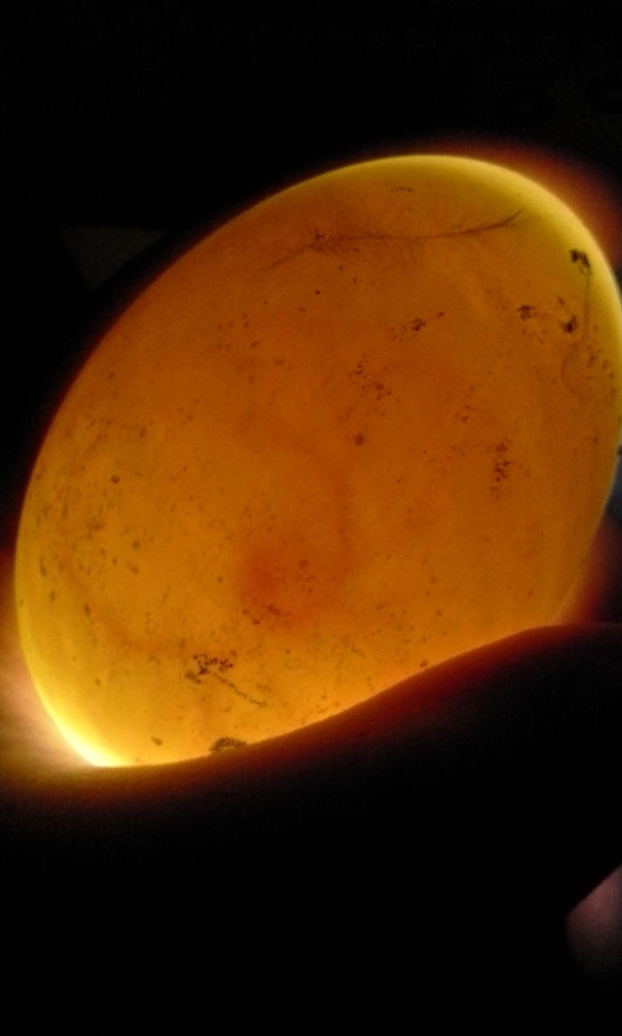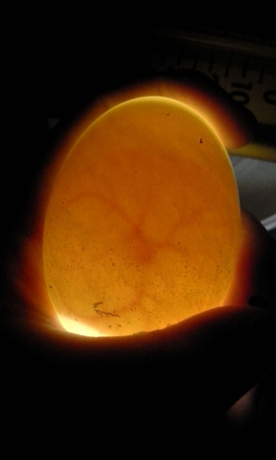 It could be a difference in shell color/thickness and/or you weren't letting as much light through in the way you were holding them. At any rate, great candling pictures!