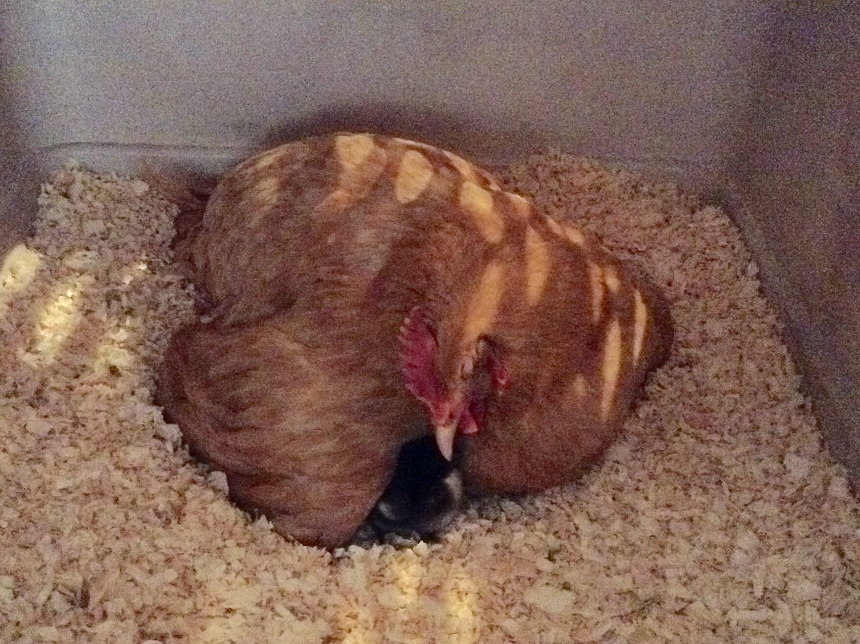 Five out of the seven in the incubator, and Goldie-momma hatched four of her six.