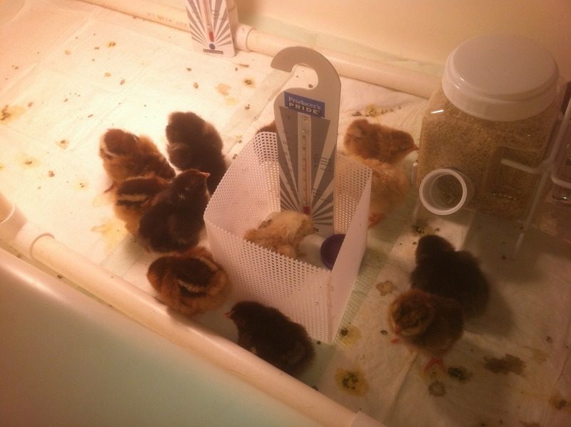 X's. The others will do fine out..those two little weak ones could get hurt with them stomping on them.Personally I would take the other's out and move them to the brooder and give these guys time to see if they strengthen up. (Then again, I remove my chicks as they hatch, cause I'm one of THOSE people...lol)