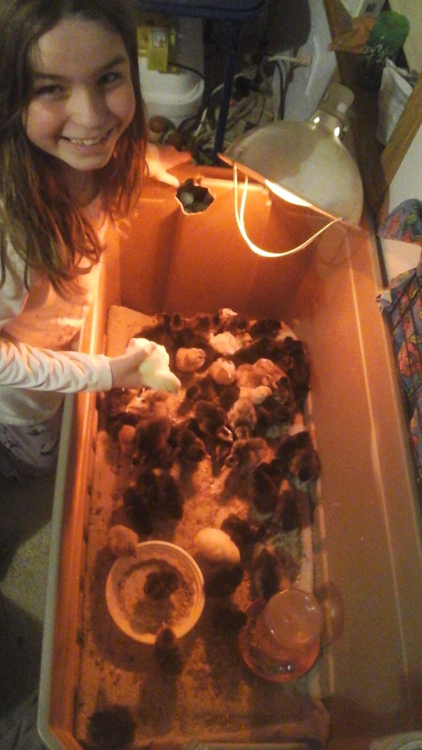 I wasn't fond of them until I came back from spring break and found my NN pullet had adopted my white leghorn chick, even though she was old enough to be out in the coop without heat. So sweet! Anyhow the chicks are just adorable. Plus, I live in AZ and they'll be more comfortable with the summer heatNo final count yet- we have several stragglers pipping, zipping and about two dozen or so that have hatched since Saturday. I hope to have a final count tomorrow night. All three incubators a tied up, some double stacked and I have 7 Sebastapol goose eggs ready to set with nowhere to set them!