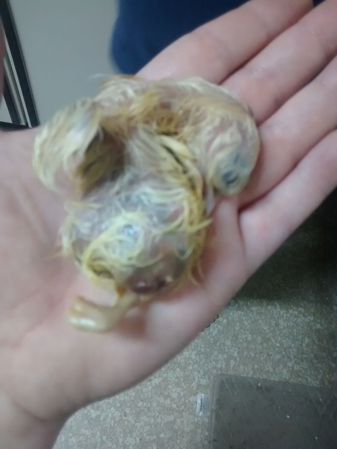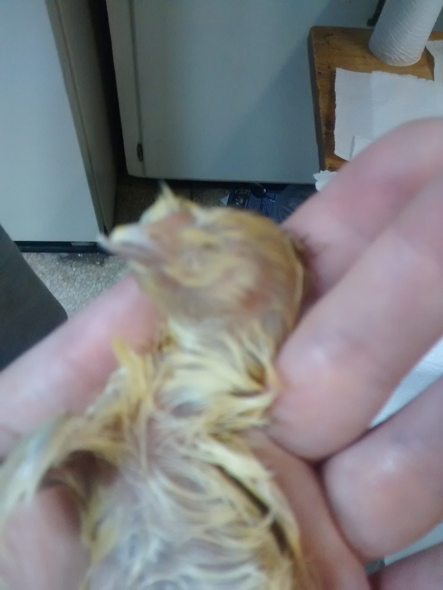 Poor baby. Oh also this chick is a silver laced wyandotte/buff Orpington mix.