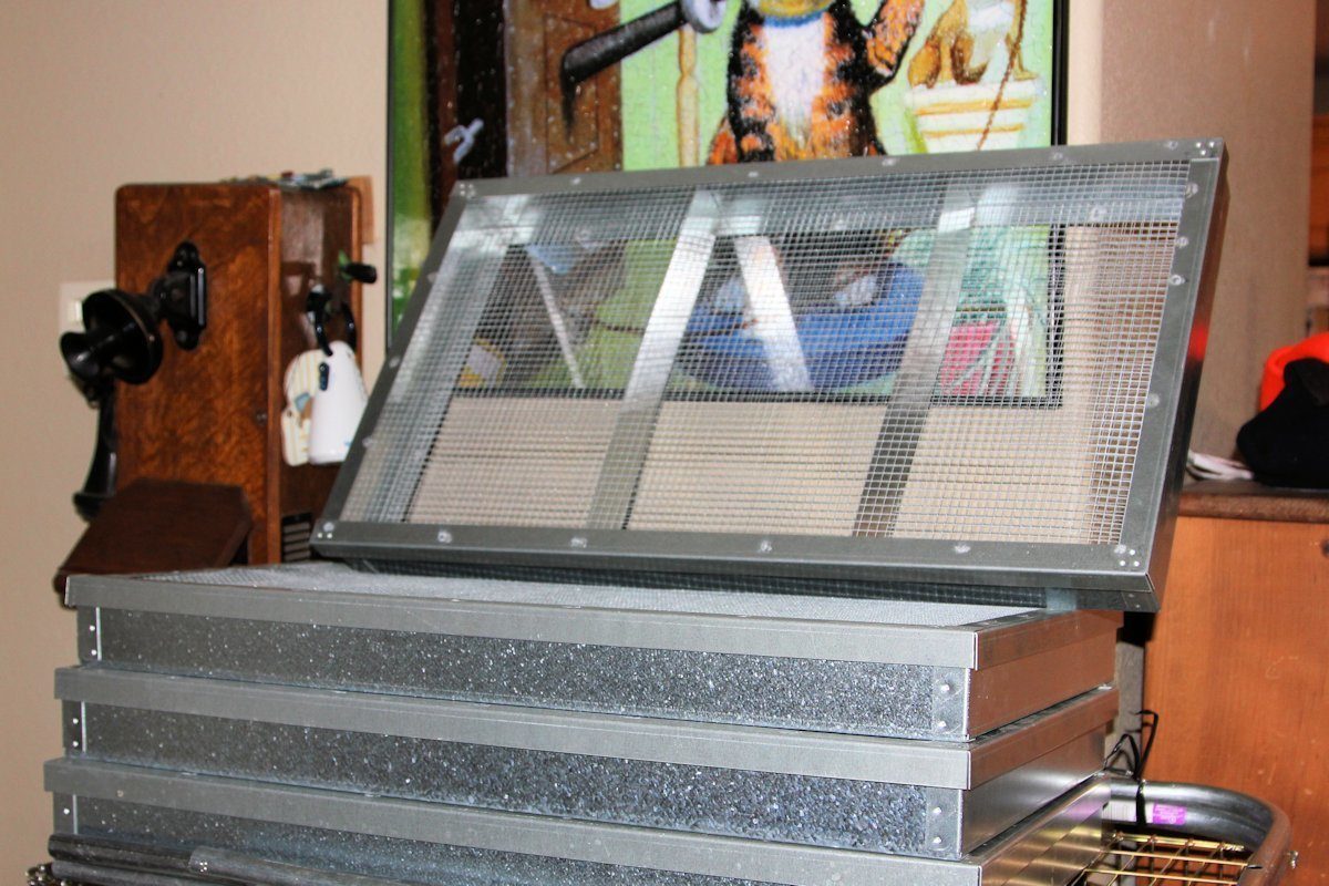 Have I mentioned that I love my pair of Dickey's cabinets (incubator and hatcher)? Love. Seriously. They're older, picked them up off craig's list from a pheasant guy getting out of the biz. They've got some wear on them, but thus far have been solid stable the past couple years. Hatcher trays are old style, so they have bent wire lids on them and they are getting pretty beat up, so I sucked it up and ordered 4 new hatching trays for it of the new drop cover style. Ernest Dickey is the nicest guy to talk to. Two days later, I've got my boxes from Dickey's. The new trays are so much nicer than the old ones (that were probably 8 or 10 years old). Love the new drop over lids and solid metal components (the old ones have wood fronts and backs). Aaa-ay-aaand they came with 2 adjustable dividers! Woot! Didn't know they'd added those. That will make it sooooooooooooo much nicer! I can split up hatching into batches, better division for me while dirtying fewer trays at a go. Score!