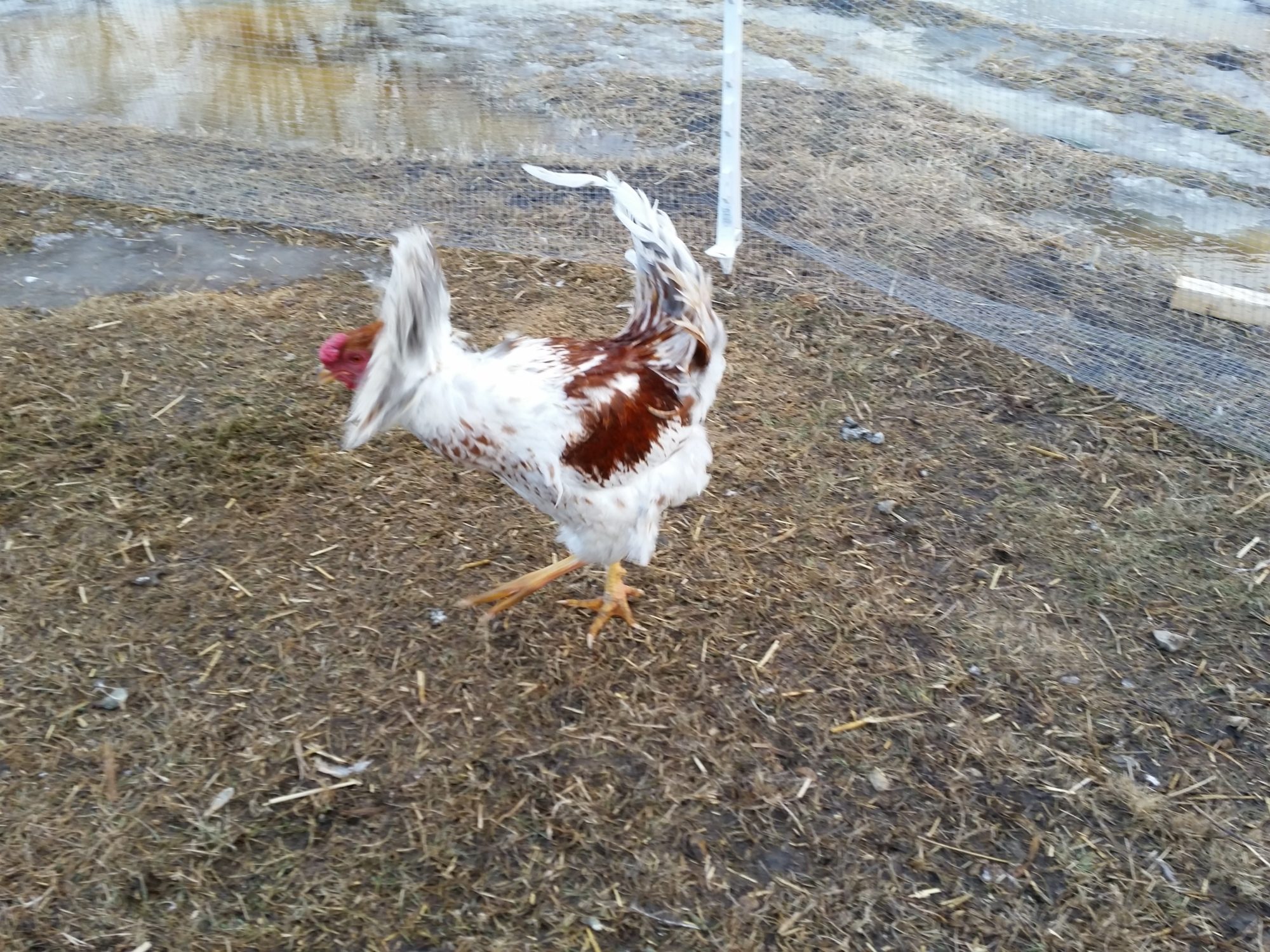 I wanted to get a good pic of one of my roosters a couple of weeks ago, but he turned just as I took it...and I got this.![]()