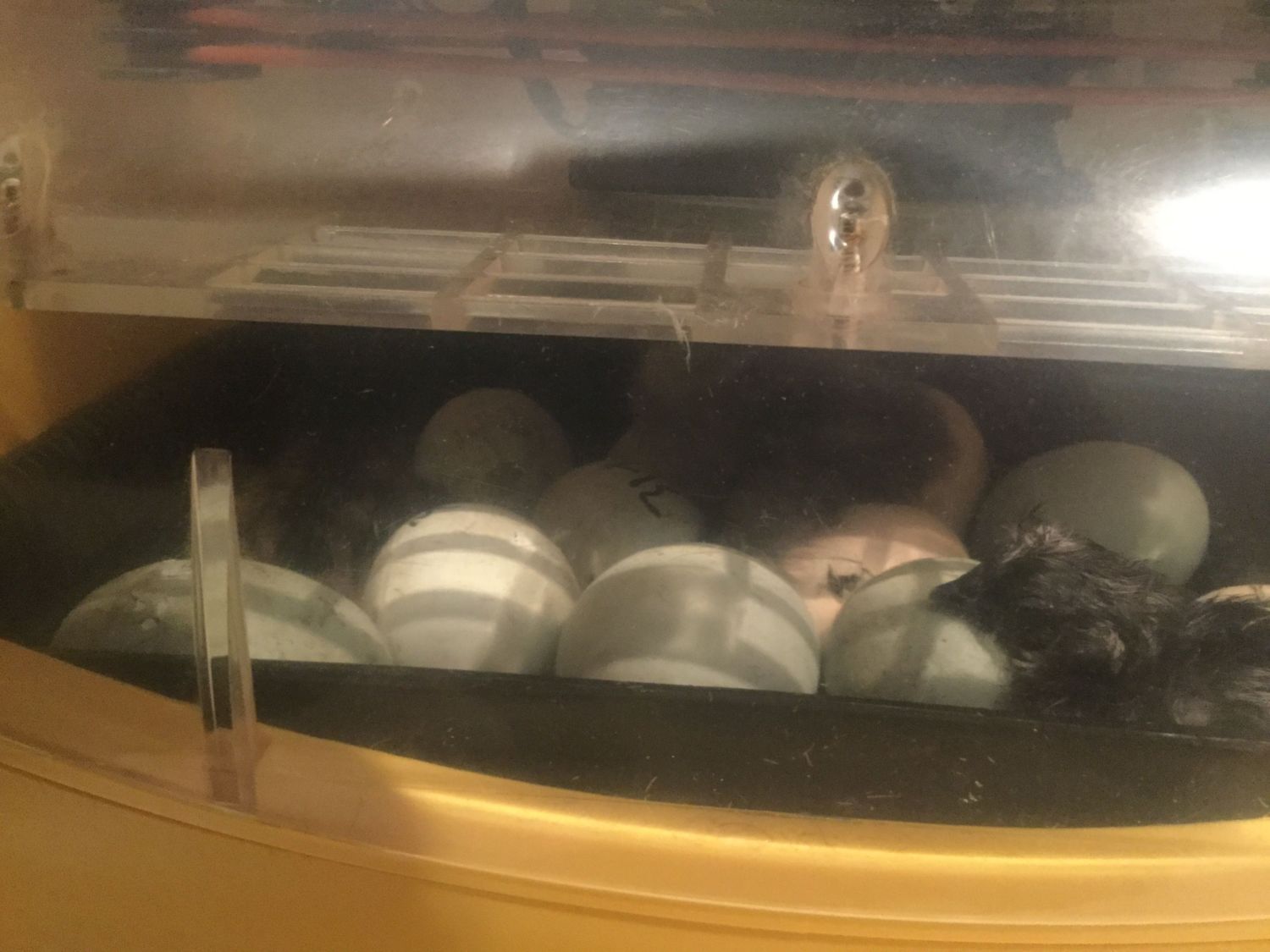 Well lessons learned. Went into lockdown with 13 of 13 for my test hatch. Everything seemed to be going good. First chick had pipped sat morning and was hatched by sat night. Don't remember the numbers but sat night into sun through out the day was busy with zips and hatches. Unfortunately woke up this morning with 3 half zipped, shrink wrapped, dead in shell. Something happened with humidity during the night. went to bed around 40% which is low but was as high as I could get it and when I checked it this morning it was at 5%. Still have 4 eggs in there that haven't started doing anything yet. Time will tell on those. Collecting for the hatch along now. Also have some Partridge rocks coming that I won off ebay. Hopefully I will get at least a roo out of those so I can set up a purebred pen of those.
